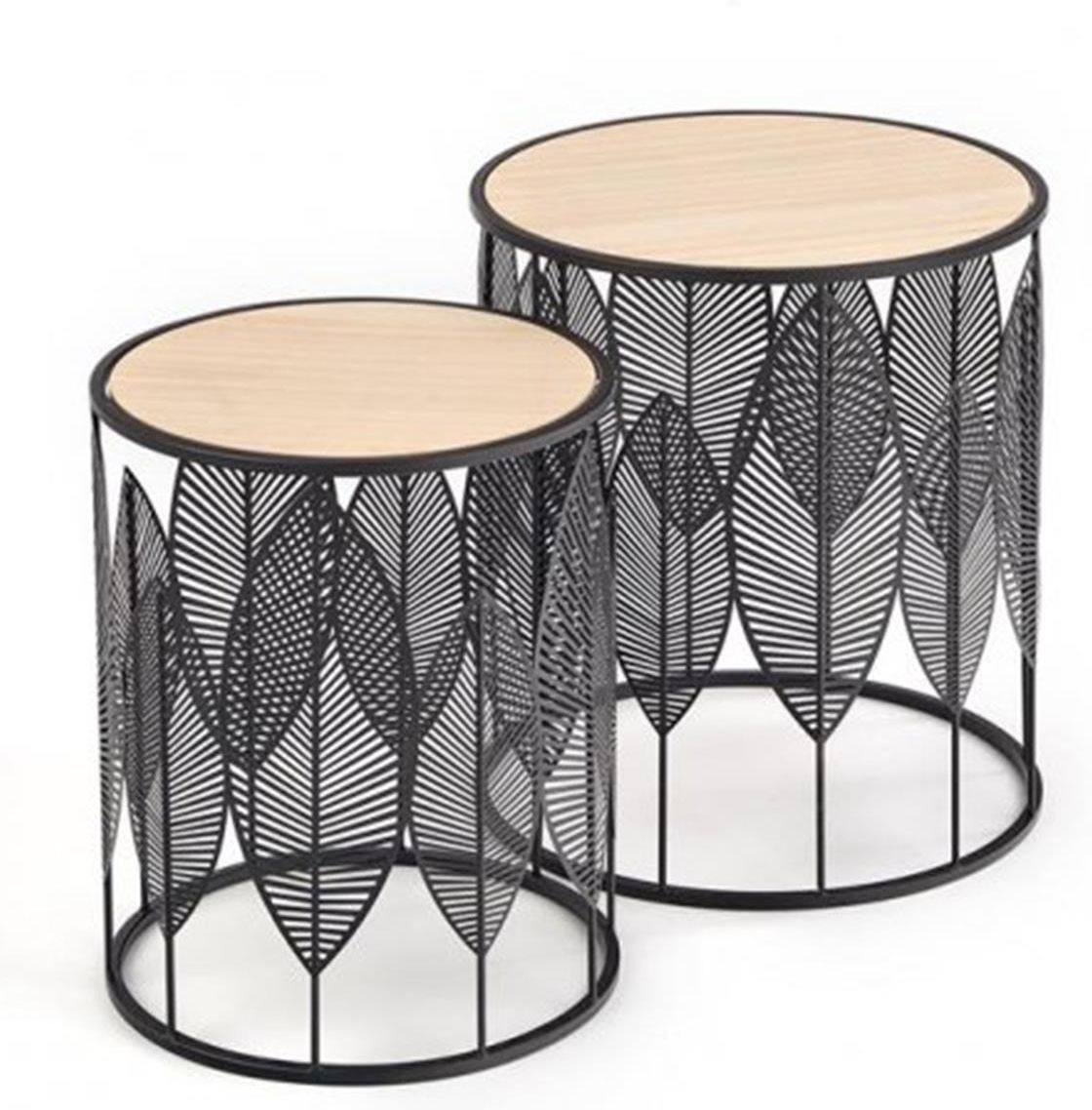 Zestaw ław Folla to piękne, ażurowe dopełnienie Twojego salonu, czy hotelowego lobby. Idealnie wpasuje się w każde wnętrze ze względu na swój niezwykle ozdobny wygląd i indywidualny charakter.Niezbędny jako dodatek do wnętrz w stylu boho, za sprawą motywu florystycznego, jaki tworzy metalowy stelaż stolików, imitujący liście.Okrągłe blaty o średnicach 40 cm i 33 cm zostały wykonanez okleinowanej płyty MDF w kolorze naturalnym.Podstawa to metalowa rzeźba, wybarwiona proszkowo na kolor czarny lub biały, o wysokościach 40 i 45 cm.Dwa osobne stoliki o różnych wymiarach pozwalają na dowolne ustawienie we wnętrzu, idealnie współgrają razem lub osobno, co daje szerokie możliwości aranżacyjne. Model objęte jest 2-letnią gwarancją producenta.Produkt dostarczymy do Państwa BEZPŁATNIEpod wskazany adres na terenie całego kraju.Co WAŻNE: zgodnie z prawem i naszymregulaminemmają Państwo pełne prawo do zwrotu nieużywanych towarów, jeśli nie spełnią one Państwa oczekiwań.