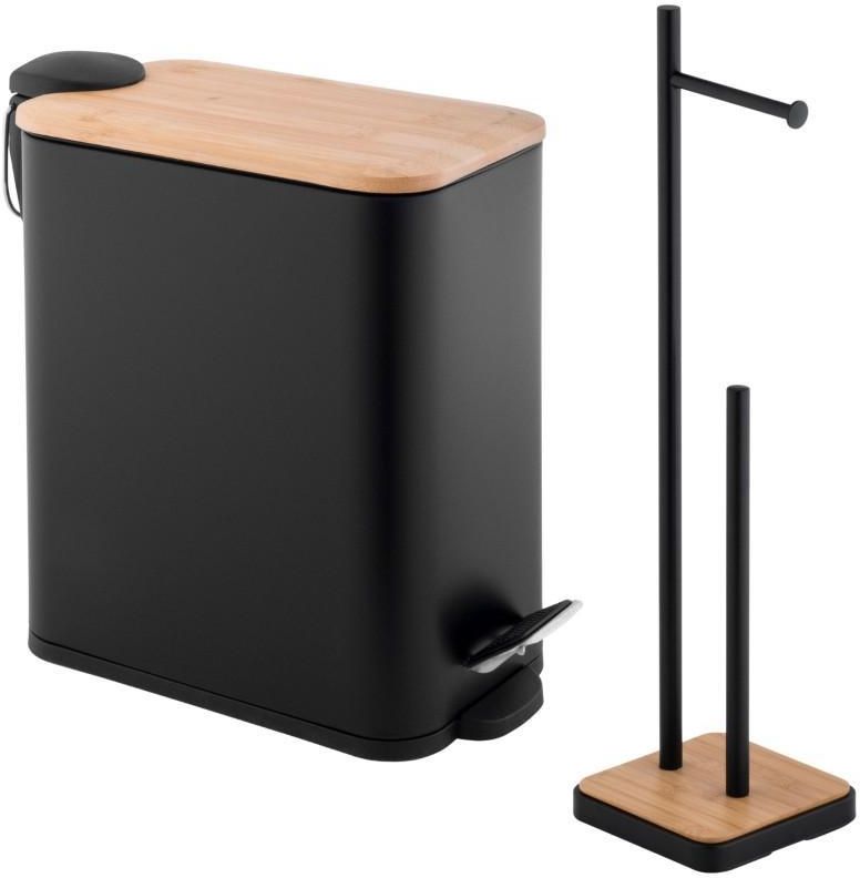 Zestaw Łazienkowy: Kosz na śmieci 5l i Stojak na papier toaletowy - czarny bambus - Yoka Home Warszawa