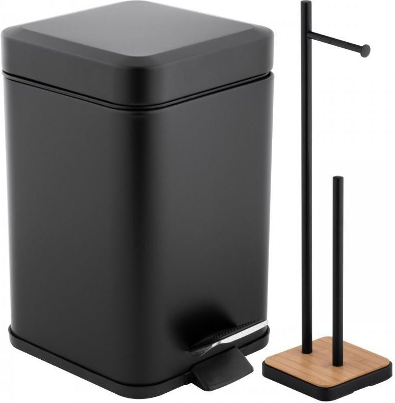 Zestaw łazienkowy kosz na śmieci z cichym opadem i Stojak na papier toaletowy czarny bambus - Yoka Warszawa