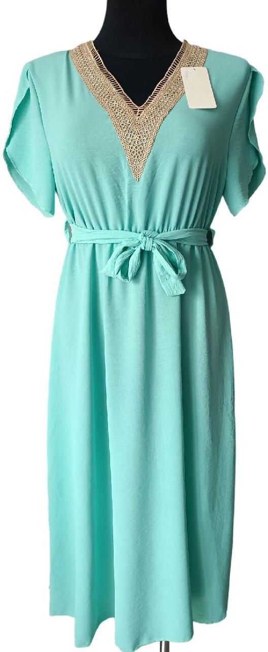 Zielona Sukienka MIDI z ozdobnym dekoltem Warszawa