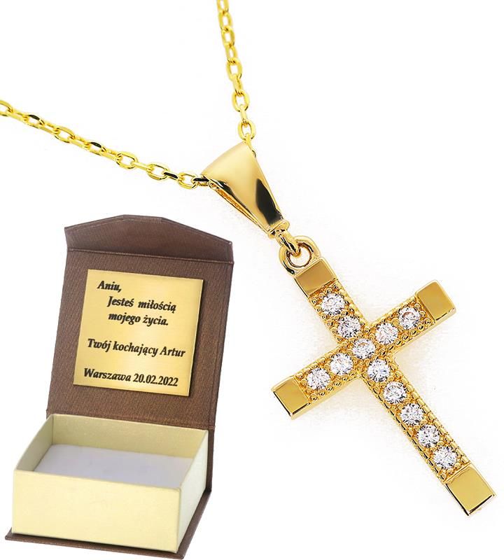 Złoty krzyżyk Próby 585 Wymiary: długość 1,8 cm szerokość 1,1 cm Złoty krzyżyk przedstawiony w naszej ofercie został wykonany z wysokiej jakości złota próby 585. Biżuteria została stworzona z pasją i wielką precyzją, aby zapewnić komfort jej użytkowania. Krzyżyk ten doskonale nadaje się zarówno jako prezent na Komunię, Chrzest, ale także jako biżuteria użytkowana przez Ciebie na co dzień. Do przedstawionego krzyżyka proponujemy bardzo szeroki wybór łańcuszków doskonale pasujących jako komplet. Zależnie od Twoich potrzeb możesz zakupić jedynie krzyżyk lub dobrać łańcuszek według własnego gustu tworząc niepowtarzalny zestaw. W przypadku wątpliwości służymy fachowym doradztwem DŁUGOŚĆ: 1,80 CM SZEROKOŚĆ: 1,10 cm PRÓBA: 585 MATERIAŁ: ZŁOTO https://sklep652320.shoparena.pl/userdata/public/gfx/7946.png Cena: 347.00 Waga: 0.82 W zestawie otrzymujesz: - Nową biżuterię badaną przez Polski Urząd Probierczy - Produkt cechowany zgodnie z polskim Prawem probierczym Dz. U. z 1993 r., Nr 55, poz 249 - Oryginalne firmowe pudełeczko (gratis) - Metkę jubilerską - Na życzenie grawerowaną tabliczkę z dedykacją PRZY ZAKUPIE POWYŻEJ 500 ZŁOTYCH OTRZYMASZ ELEGANCKĄ TOREBKĘ PREZENTOWĄ GRATISNa życzenie grawerowana dedykacja na tabliczce umieszczonej wewnątrz pudełeczka. W przypadku zakupu powyżej 100 złotych dedykacja gratis. Tabliczka laminowana w kolorze złotym z grawerem dowolnego tekstu w kolorze czarnym. Treść graweru oraz rodzaj pudełeczka należy podać w "wiadomości do sprzedającego" Jeśli nie otrzymamy takiej informacji produkt zostanie zapakowany w standardowe pudełeczko bez dedykacji.