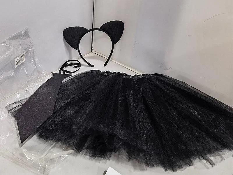 KOSTIUM CZARNY KOT Prezentujemy Ci uroczy strój kota, który zapewni Twojemu dziecku niezapomniane przeżycia i wyjątkowy wygląd na różnego rodzaju imprezach i zabawach. Tek kompletny zestaw składa się z sukienki, opaski na głowę i muszki, które wspólnie tworzą uroczy kostium. Sukienka jest głównym elementem tego stroju, wykonana z aż 3 warstw tiulu o intensywnym, czarnym kolorze. Jest wygodna w noszeniu i umożliwia swobodne poruszanie się dziecka. Posiada gumkę, dzięki czemu rozmiar jest uniwersalny. Opaska na głowę, na której znajdują się kocie uszy, to piękne uzupełnienie stroju, które nadaje mu jeszcze większego realizmu. Dodatkowo w zestawie znajdziemy krawat, która dodaje elegancji i uroku. Złap swoją wyobraźnię i spraw, aby Twoje dziecko poczuło się jak prawdziwy kotek w tym uroczym stroju. Dzięki niemu stanie się ono centrum uwagi i z pewnością wzbudzi uśmiech na twarzach wszystkich obecnych. Przygotuj się na mnóstwo radości i zabawy na karnawałach, halloween, przyjęciach tematycznych, występach w szkole lub przedszkolu czy po prostu zabawy w domu. Wymiary spódniczki Długość: 30 cm Szerokość: 20 - 40 cm (minimalne i maksymalne rozciągnięcie gumki) Długość krawatu: 29 cm Wymiary opaski: 19,5 x 15,5 cm