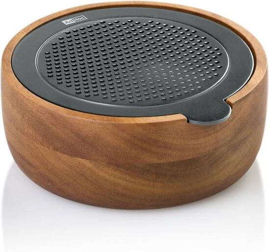 Tarka do Sera Czekolady stołowa o drobnym ostrzu CutnServe AdHoc 4037571397624 Tarka do sera / czekolady marki AdHoc Fototrawione, zakrzywione ostrze PreciseGrate in curvedDesign posiada dużą powierzchnię tarcia, sprawiając że praca z tarką CutnServe jest komfortowa i łatwa. Przyda się do twardych serów, przypraw, orzechów, czekolady i wielu innych produktów. Akacjowa miska może posłużyć do serwowania startego produktu, a umieszczone na jej spodzie antypoślizgowe stopki zapewniają stabilność podczas tarcia. Ostrze można z łatwością zdjąć z deski i włożyć do mycia do zmywarki i odłożyć odwrotną stroną na misce do bezpiecznego przechowywania. Produkt został zaprojektowany przez Roberta Franzhelda. Materiał: stal nierdzewna / drewno akacjowe Przybliżone wymiary tarki : głębokość pojemnika mierzona wewnątrz - 4 cm średnica góra - 13 cm średnica wewnętrzna pojemnika - 10,5 cm średnica powierzchni trącej - 9 cm Przybliżona waga brutto: 0,250 kg. Opakowanie: kartonowe pudełko prezentowe.