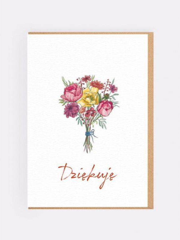 Dziękuję kartka Producent: Nadwyraz**** Kod paskowy (EAN): 5902001001251 "Dziękuję kartka" - opis ?Dziękuję? to obok ?dzień dobry? najważniejsze i najbardziej magiczne słowo w języku polskim. Nic tak nie łączy ludzi jak wdzięczność za okazaną dobroć! Z myślą o osobach, które chciałyby podziękować komuś za pomocą listu lub upominku, stworzyliśmy uniwersalną kartkę okolicznościową ze słowem DZIĘKUJĘ. Klasyczny wzór z bukietem polskich kwiatów poleca się jako dodatek do prezentu dla osoby, której należą się podziękowania. Kartka w zestawie z elegancką kopertą jest pusta w środku i została wydrukowana na papierze ekologicznym. Jej wnętrze czeka na wypełnienie treścią płynącą prosto z Twojego serca! Kartka okolicznościowa z podziękowaniami Wymiary kartki (po złożeniu): 12 cm x 17 cm Gramatura papieru: 250 g/m2 W zestawie elegancka koperta z eko kraftu Wymiary koperty: 12,5 cm x 17,5 cm Gramatura koperty: 100 g/m2 Zestaw zapakowany w folię Wyprodukowano w Polsce