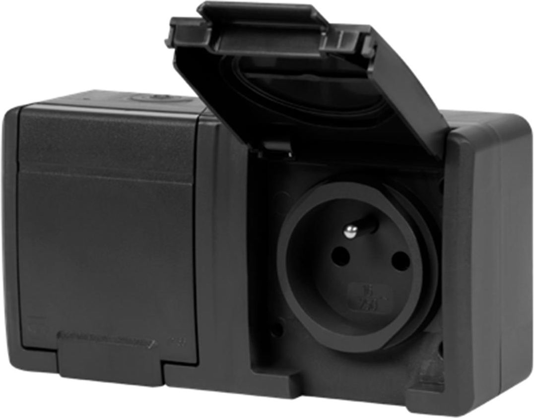 Gniazdo podwójne poziome hermetyczne IP55 natynkowe AQUANT 2K EPN 5041-17 AQUANT™ IP /55 to seria, która łączy sprawdzone rozwiązania z nowymi technologiami, dostosowanymi do aktualnych potrzeb rynkowych. W odpowiedzi na wyzwania, jakie stawiają przed nami zmienne warunki środowiskowe, wprowadziliśmy szereg innowacji, które wyróżniają nowe produkty na tle poprzednich wersji: Dwukomponentowe uszczelnienie 2K – innowacyjna technologia, która gwarantuje najwyższą szczelność oraz odporność na wodę i pył. To rozwiązanie zapewnia długotrwałą ochronę w trudnych warunkach. Bezhalogenowa, płaska dławica – zwiększona szczelność i odporność na działanie warunków atmosferycznych. Antracytowy kolor RAL 7016 – nowoczesny, elegancki wygląd, który doskonale wpisuje się w aktualne trendy wzornicze. Dostępny również w wersji szarej (RAL 7035). Cechy, które gwarantują bezpieczeństwo i trwałość Produkty AQUANT™ to więcej niż tylko standardowe gniazda i łączniki. To kompleksowe rozwiązanie, które zapewnia niezawodność działania nawet w najbardziej wymagających warunkach, takich jak hale garażowe, przemysłowe, myjnie samochodowe czy instalacje zewnętrzne. Odporność na uderzenia IK07 – solidna konstrukcja zapewnia wytrzymałość w środowiskach o wysokim ryzyku uszkodzeń mechanicznych. Ochrona przed pyłem i wodą na poziomie IP55 – możliwość rozszerzenia ochrony do IP65 dzięki zastosowaniu opcjonalnej dławicy. Wytrzymałe materiały – konstrukcja wykonana z trwałego tworzywa ABS+TPE, odpornego na promieniowanie UV, co gwarantuje długowieczność w trudnych warunkach atmosferycznych. Łatwość montażu i konfiguracji – możliwość zestawienia gniazd i łączników w kombinacjach poziomych i pionowych. Dostępne zestawy podwójne, potrójne oraz kombinacje gniazd z wyłącznikami. Gniazda 16A oraz łączniki 10AX – niezawodne i trwałe, dostępne w różnych konfiguracjach (gniazda francuskie oraz schuko). Testowane w ekstremalnych warunkach – idealne do zastosowania w przemyśle, zakładach agro-food, pralniach, garażach oraz innych wymagających środowiskach. Dane techniczne Rodzaj gniazda: podwójne, poziome, natynkowe, 2x2P+Z Napięcie: 250V Prąd maksymalny: 16A Stopień IP: IP55 (możliwość rozszerzenia ochrony do IP65 dzięki zastosowaniu opcjonalnej dławicy) Odporność na UV: Tak Rodzaj zacisków: Zaciski śrubowe Kolor: Antracyt (RAL 7016) Wymiary: 153x81x56