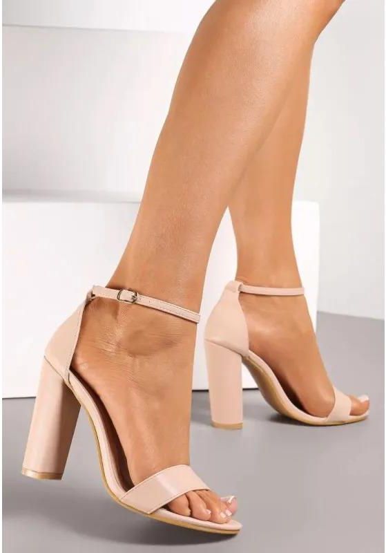 Sandały Messei z pojedynczym paskiem przy palcach i wokół kostki. Zapinane na sprzączkę. Osadzone na wysokim słupku. To idealne sandały na wesele. - Kolor: Różowy - Tęgość stopy: Neutralny - Rodzaj obcasa: Słupek - Wkładka/wyściółka: Ekoskóra - Materiał: Ekoskóra - Nosek buta: Otwarty - Zapięcie: Sprzączka - Sezon: Wiosna, Lato - Wysokość obcasa: 10cm