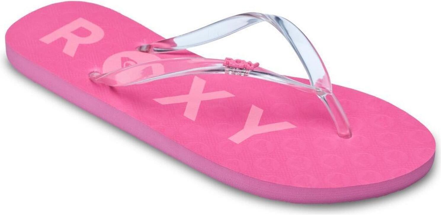 Klapki japonki damskie VIVA JELLY Marka:Roxy Opis produktu Klapki damskie. Cechy: Materiał: Syntetyczna tkanina wierzchnia, Szczegóły cholewki: Przezroczysta galaretka, Wkładka: Teksturowana, z recyklingu gąbka EVA, Podeszwa: Z recyklingu gąbka EVA. Cechy kluczowe Surfing Buty plażowe Japonki …
