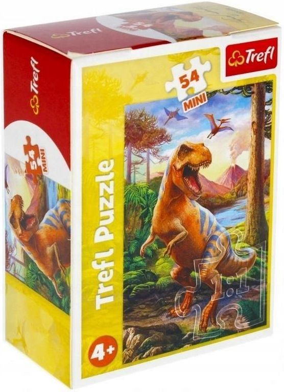 Trefl Puzzle mini 54el. Niesamowite Dinozaury 19731 Puzzle dla najmłodszych w małych, wygodnych pudełeczkach, które swobodnie zmieszczą się w dziecięcym plecaczku i na półce z zabawkami. Każda układanka to inny obrazek, złożony z 54 elementów. Wiemy, jak ważne jest bezpieczeństwo Twojego dziecka. Dokładamy wszelkich starań, aby nasze puzzle były nie tylko atrakcyjne i stymulujące rozwój na każdym etapie jego edukacji, lecz także spełniały najwyższe normy bezpieczeństwa.  Układanie puzzli uczy dziecko cierpliwości, zręczności manualnej i spostrzegawczości potrzebnej, by dopasować do siebie pasujące elementy. To także doskonały trening wspomagający koordynację wzrokowo - ruchową, a także okazja do kreatywnego spędzania czasu z maluszkiem.