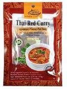 Czerwona pasta curry to intensywna mieszanka czerwonych papryczek chili, czosnku, trawy cytrynowej, szalotki i przypraw. To gotowy zestaw do zupy curry czerwonej wraz z mlekiem kokosowym. Bez barwników, konserwantów. Opakowanie zestaw 77g.