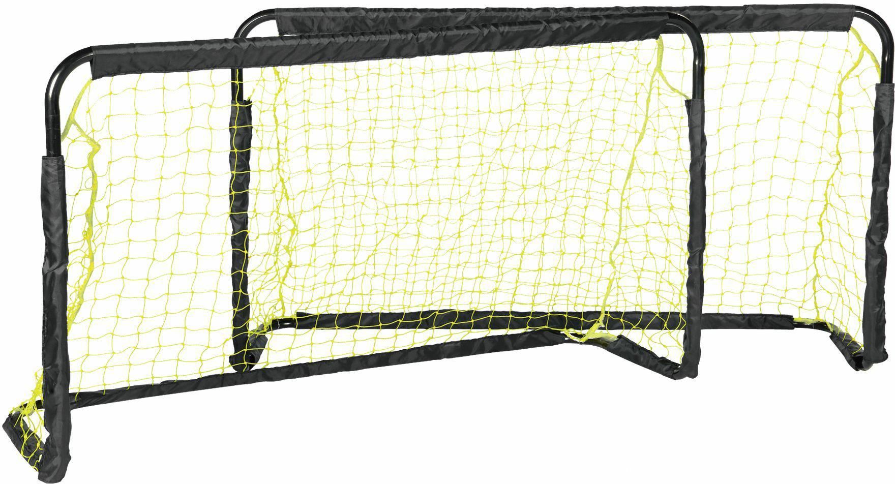 Konstrukcja wykonana ze stalowych rurek (profili) malowanych proszkowo zapewniających wytrzymałość, odporna na warunki atmosferyczne. Solidna podstawa zapewnia stabilność bramki na podłożu i zapobiega jej przewracaniu. Słupki i poprzeczki pokryte wytrzymałem materiałem poliestrowym Oxford 210D. Siatka z polietylenu PE odporna na rozciąganie i odkształcenia. Idealna do treningów i rekreacyjnej gry zarówno dzieci, jak i dorosłych. Świetnie sprawdzi się w ogrodzie, na działce, plaży czy boisku. Kotwy (śledzie) mocujące w zestawie. Zestaw zawiera 2 bramki. Dane techniczne: Rozmiar: 120x70x40 cm Średnica rurki: 22x0,6 mm Rozmiar oczek siatki: 4,5x4,5 cm Waga: 3,5 kg