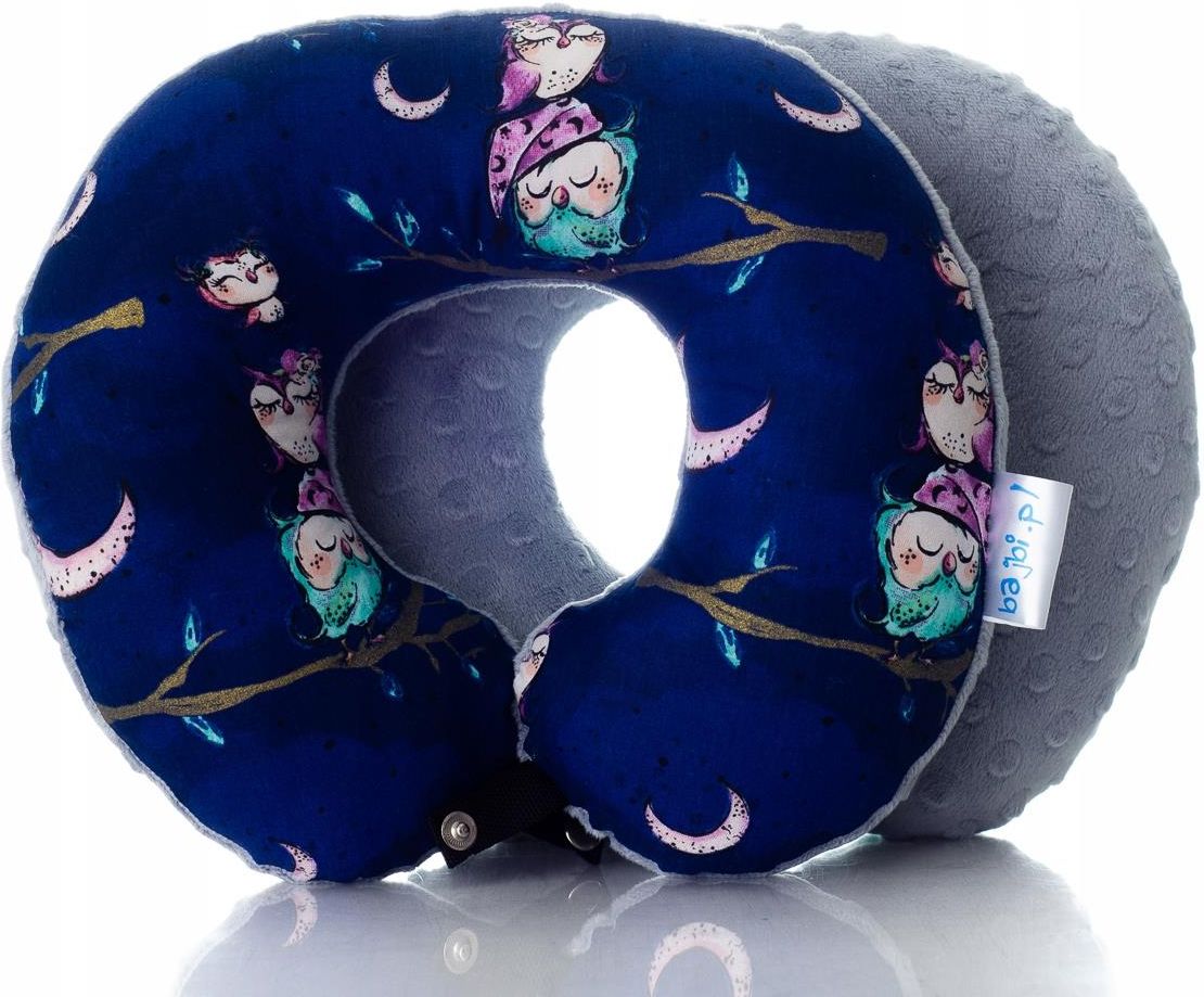 Cechy produktu : Bardzo wygodna do samochodu, samolotu, pociągu. Wykonana w białostockiej pracowni z materiałów najwyższej jakości (polska bawełna + polar minky). Rozmiar zalecany dla osób dorosłych z normalną lub grubszą szyją obwód powyżej 35 cm (jeśli jesteś drobnej budowy polecam poduszkę w rozmiarze dla dzieci) Każdy produkt jest szyty pod zamówienie, dajemy sobie dwa dni robocze na realizację, ale w miarę możliwości staramy się by było to poniżej 24 h mając na uwadze to, że często zamówienia są pilnie potrzebne :) Zapięcie na nap pozwala przewozić poduszkę wygodnie nie zajmując dodatkowego miejsca w bagażu- dopinając do walizki, paska od spodni Dzięki zapięciu na nap poduszka nie wędruje po samochodzie tylko może zostać wpięta w zagłówek lub przypięta do pasa Wypełnienie antyalergiczne - miękka puszysta kulka silikonowa zapewniająca komfort podróżowania i możliwość prania poduszek w pralce (dla porównania -większość poduszek na rynku jest wypełniana kulką styropianową, której niewolno prać i która utlenia się, bardzo szybko zmieniając walory poduszki). Model : przód śpiące sowy / tył szare minky (zdjęcie poglądowe wzór na produkcie może się ułożyć inaczej) Wymiary : około 28/32 cm średnica wewnętrzna ok 13 cm Rozmiar : dla osób dorosłych z normalną lub grubszą szyją - obwód szyi powyżej 35 cm (jeśli jesteś drobnej budowy polecam rozmiar dla dzieci) Cena : dotyczy 1 sztuki Skład : 100% bawełna 100% poliester minky wypełnienie puszysta poliestrowa kulka silikonowa antyalergiczna Pranie : Prać w temperaturze 40 st. C Nie wirować Nie prasować po stronie polaru minky Nie suszyć w suszarce bębnowej Polecamy inne produkty z tej serii do kompletu. Produkt Polski z małej manufaktury na poddaszu. Kupując ten produkt wspierasz polską firmę, która wkłada w to całe serce. Dziękuję
