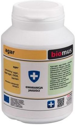 Agar 50g Biomus Dystrybutor: Biomus Gatunek: czysty moc min. 900g/cm2 Dostępne opakowania: 50g, 100g, 250g, 500g, 1kg Agar 50gAgar - agar - substancja pochodzenia roślinnego, pozyskiwana z glonów- krasnorostów. Posiada właściwości żelujące. Agar pęcznieje w zimnej wodzie, a rozpuszcza się w wodzie o temperaturze ok. 90- 100 C, natomiast zestala się w formie żelu w temperaturze 40- 50 C.Agar pozyskiwany jest z podwodnych planacji, głównie u wybrzeży Japonii. Zapotrzebowanie na roślinny surowiec coraz bardziej rośnie. Substancja jest bezwonna i bezsmakowa, po dokładnym rozpuszczaniu w wodzie. W przeciwnym razie może być wyczuwalny zapach morza i wodorostów. Uznana za bezpieczny dodatek.Zastosowanie agaruW produkcji masowej artykułów spożywczych jest środkiem stabilizującym, stosowanym do zagęszczania i żelowania. Dodawany jest do dżemów, galaretek, ciastek, soków, kompotów, kremu karmelowego, lodów, budyni, kisieli, sosów i majonezów. Agar – agar jest używany, także w fotografii przy produkcji światłoczułej emulsji, farmacji i kosmetyce. W laboratoriach mikrobiologicznych i biotechnicznych jest neutralnym podkładem do pożywek, na których hoduje się bakterie.Synonimy: agar, naturalna żelatynaGatunek: CzystyCzystość: ekstraktWzór chemiczny: nie dotyczyNr CAS: nie dotyczyNr WE: nie dotyczyNr index: nie dotyczy