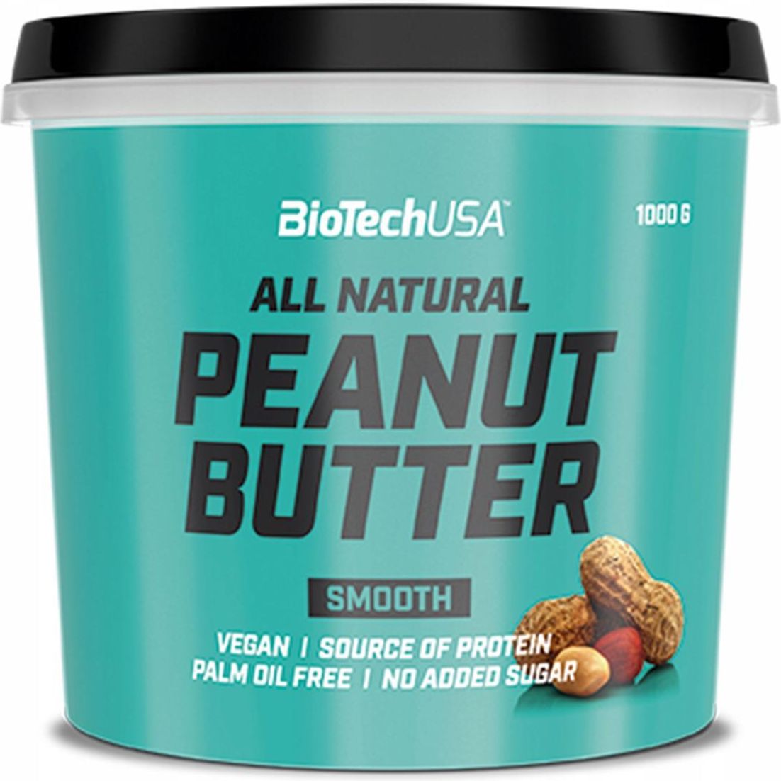 BioTech USA Peanut Butter 1000g smooth prosty skład (tylko orzechy i sól) bez aspartamu, glutenu i GMO nie zawiera oleju palmowego idealny jako samodzielna przekąska oraz dodatek do dań, koktajli i deserów produkt wegański BioTech USA Peanut Butter smooth to 1 000 gramów naturalnego masła …