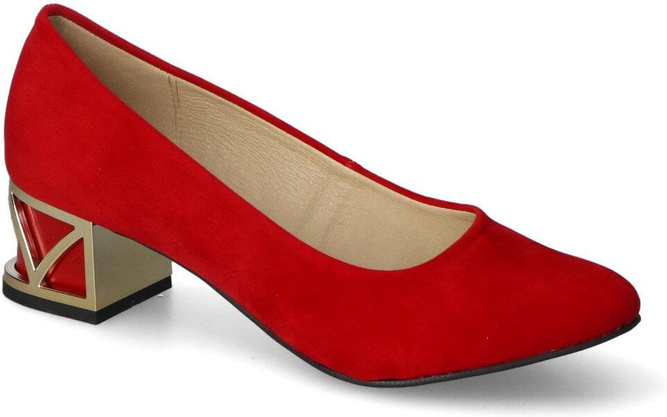 Eleganckie czółenka firmy Kamex-but: - cholewka wykonana została z ekozamszu - wnętrze zostało pokryte skórą ekologiczną aby zapewnić komfort podczas użytkowania - wkładka wewnętrzna została wykonana ze skóry ekologicznej - obcas o wys. 5 cm zapewnia odpowiednią stabilizację - czerwony kolor, stylowy obcas i modny fason tworzą zachwycający efekt!