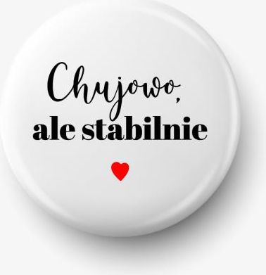 Zabawna przypinka z napisem "ch*jowo ale stabilnie".