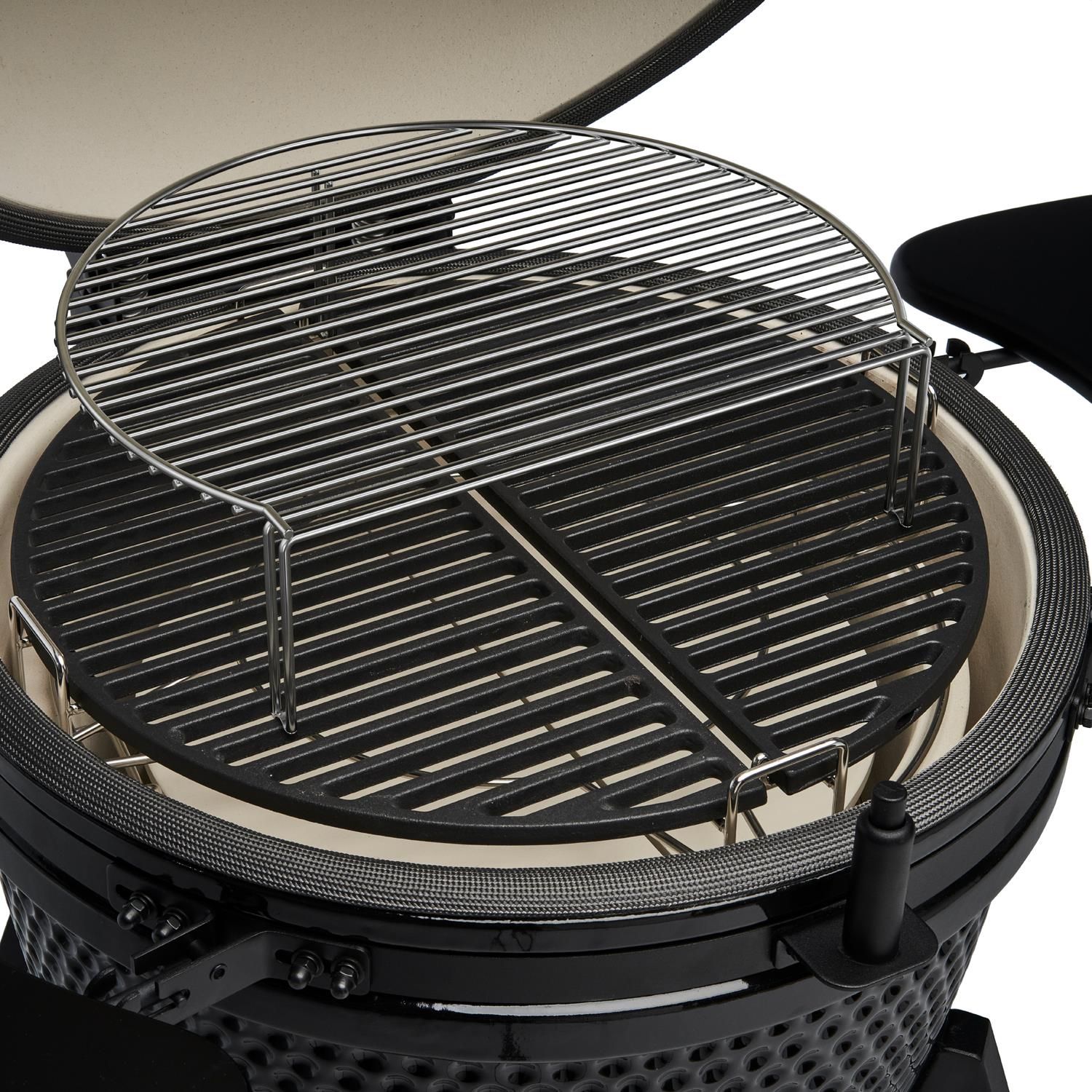 Rozbuduj swoje możliwości! Twoje grillowanie może osiągnąć nowy wymiar z expanderem do grilla Köler. Wzbogać swoje menu o delikatne ryby, owoce morza i kolorowe warzywa. Siegnij po bardziej subtelne potrawy, lubiące ciepło, ale nie żar. Wykorzystaj potencjał swojego grilla w 100%, zyskując dodatkową powierzchnię, która idealnie nadaje się również do trzymania gotowych dań w cieple. Czym jest expander do grilla? To dodatkowy podwyższony ruszt, który montujesz nad główną powierzchnią grillowania. Daje Ci drugą kondygnację w grillu, pozwalając jednocześnie przyrządzać potrawy wymagające różnych temperatur. Świetnie sprawdza się do wolniejszego pieczenia lub delikatnego podgrzewania, bez ryzyka przypalenia. Choć zaprojektowany z myślą o grillach typu Kamado, expander jest niezwykle uniwersalny – możesz go z powodzeniem używać także w tradycyjnych grillach węglowych oraz gazowych. To prosty sposób, by zyskać więcej miejsca i możliwości!