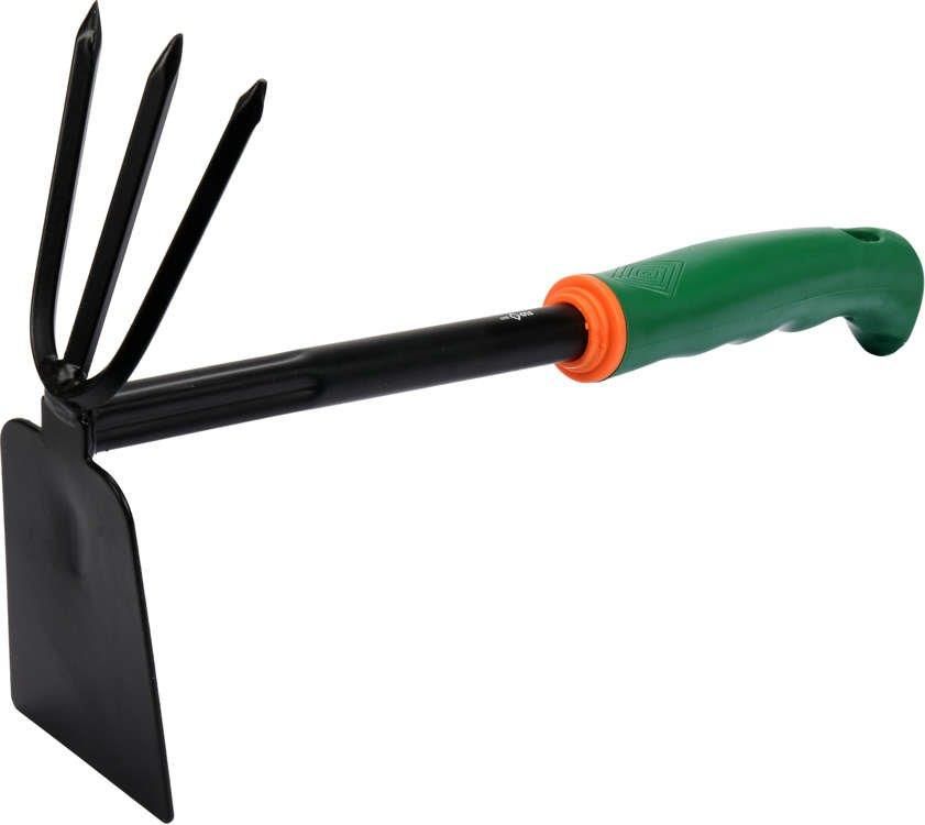Opis produktu Motyczka z pazurkami o trzech zębach i szerokości części roboczej 65 mm Osadzona na krótkim trzonku z wygodną rękojeścią Przeznaczona do prac porządkowych i ogrodowych, m.in. do spulchniania, rozdrabniania gleby, okopywania, pielenia, napowietrzania oraz pielęgnacji gęsto rosnących …