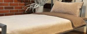 Luksusowy bardzo ciepły (1040g/m2) koc wełniany Camel 140x200 wykonany z dwóch warstw mieszanki wełny owczej Merynos i wysokogatunkowej wełny wielbłądziej - miękkiej, przyjemnej i "aksamitnej" w dotyku. Najwyższa jakość wykonania i doskonałe walory estetyczne sprawią, że produkty z wełny camel będą ozdobą każdego domu. Koc może służyć jako narzuta, podkład do ćwiczeń lub okrycie w chłodne dni. Starannie obszyty usztywniającą lamówką. Naturalne wełna posiada ogromne właściwości do wchłaniania wilgoci (nawet do 30 % swojej masy), nie sprawiając przy tym wrażenia mokrej. Wełna jest surowcem zdrowym, przyjaznym dla organizmu ludzkiego. Włókno wełniane reaguje w wysokim stopniu na zmiany temperatury otoczenia. Kurczy się gdy jest zimno, a rozpręża gdy jest gorąco. Dzięki temu zimą doskonale grzeje, a latem chroni przed poceniem i przegrzaniem organizmu. Wyrób ten posiada atest nadany przez Państwowy Urząd Rejestracji Produktów Leczniczych, Wyrobów Medycznych i Produktów Biobójczych. Należy do kategorii wyrobów medycznych stosowanych w rehabilitacji oraz profilaktyce m.in. osób dotkniętych skutkami urazów, osteoartozą, infekcjami narządów ruchu, zmianami antyreumatycznymi, zaburzeniami krążenia, czy schorzeniami o podłożu immunologicznym. Produkt antyreumatyczny. Posiada certyfikat Woolmark. Naturalna wełna Camel posiada dużą ilośc lanoliny, chroniącą włos przed zabrudzeniem. Zobojętnia jony dodatnie które rozstrajają system nerwowy człowieka a następstwem tego są bóle głowy, spadek odporności organizmu, zmęczenie. Wyrób przeznaczony dla osób cierpiących na określone przypadłości reumatyczne, jak również dla osób które przywiązują wagę do zdrowego trybu życia. Wyroby wykonane z dzianin wełnianych zalecane są dla osób zdrowych jako produkt naturalny profilaktyczny, zapewniający zdrowy wypoczynek. Ponadto pomagają w leczeniu najczęsciej występujących dolegliwości współczesnej cywilizacji, tj.: choroby zwyrodnieniowe stawów i kręgosłupa dolegliwości reumatyczne nerwobóle bóle pourazowe schorzenia nerek zaburzenie termoregulacji