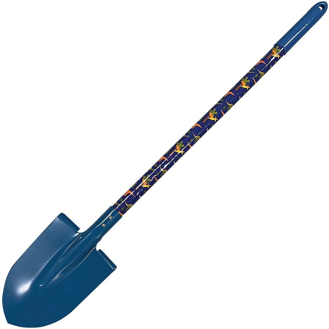 Greenmill Kids Szpadelek metalowy 0147C Szpadelek dla dzieci do prac ogrodowych. Materiał głowicy: stal malowana proszkowo. Materiał trzonka: drewno pokryte ochronną warstwo tworzywa (PVC). Wzór kolorystyczny: granatowy (zielono-żółte duże dinozaury). Długość 73cm, szerokość około 12cm. Zakończenie …