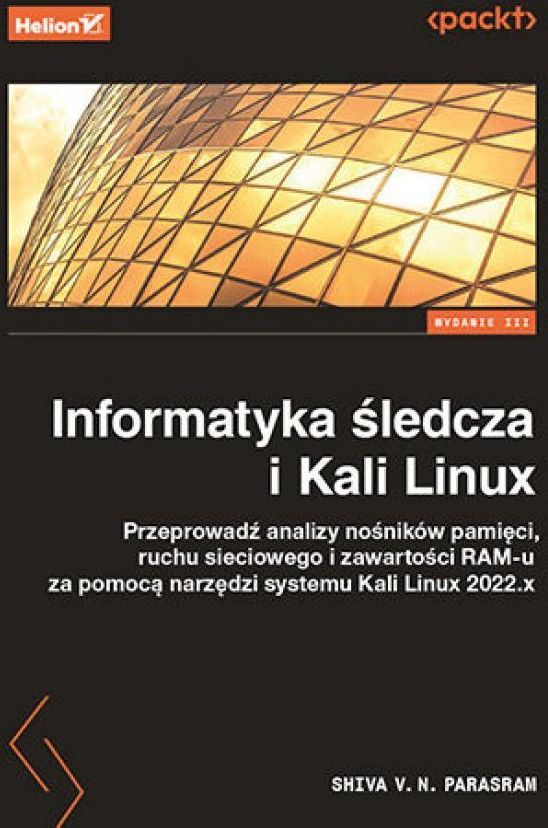 Aby pomyślnie przeprowadzić dochodzenie cyfrowe, poza specjalnymi umiejętnościami i wiedzą techniczną musisz dysponować odpowiednimi narzędziami. Z rozwoju technologii korzystają również przestępcy, którzy popełniają swoje występki na wiele dotychczas nieznanych sposobów. W tych warunkach bezcenną pomoc możesz znaleźć w Kali Linuksie - potężnym systemie specjalnie przygotowanym do prowadzenia testów penetracyjnych i dochodzeń w informatyce śledczej. Ta książka pomoże Ci w doskonaleniu umiejętności potrzebnych na każdym etapie dochodzenia cyfrowego, od zbierania dowodów, poprzez ich analizę, po tworzenie raportów. Dzięki wielu wskazówkom i praktycznym ćwiczeniom przyswoisz techniki analizy, ekstrakcji danych i raportowania przy użyciu zaawansowanych narzędzi. Poznasz różne systemy przechowywania plików i nauczysz się wyszukiwać urządzenia sieciowe za pomocą skanerów Nmap i Netdiscover. Zapoznasz się też ze sposobami utrzymywania integralności cyfrowego materiału dowodowego. Znajdziesz tu ponadto omówienie kilku bardziej zaawansowanych tematów, takich jak pozyskiwanie ulotnych danych z sieci, nośników pamięci i systemów operacyjnych. Z książki dowiesz się: jak przygotować do pracy system Kali Linux na różnych platformach sprzętowych po co w analizach DFIR bada się zawartość RAM, a także systemy plików i nośniki danych jak używać narzędzi takich jak Scalpel, Magic Rescue, Volatility 3 czy Autopsy 4 czym jest ransomware i jak korzystać z artefaktów systemowych w dochodzeniach DFIR jak za pomocą narzędzi NFAT przechwytywać pakiety i analizować ruch sieciowy Kali Linux: Twój najlepszy partner w cyfrowej dochodzeniówce! Spis treści: O korektorach merytorycznych O autorze Wstęp Część 1. Podstawy działania zespołów Blue Team i Purple TeamRozdział 1. Podstawy działania zespołów Red, Blue i Purple TeamJak zacząłem pracę z systemem Kali Linux Czym jest Kali Linux? Dlaczego system Kali Linux jest tak popularny? Zespół Red Team Zespół Blue Team Zespół Purple Team Podsumowanie Rozdział 2. Wprowadzenie do informatyki śledczejCzym jest informatyka śledcza? Dlaczego potrzebujemy zespołów Red i Purple Team? Metodologia i procedury w informatyce śledczej Normy i standardy z zakresu informatyki śledczej Porównanie systemów operacyjnych dla informatyki śledczej DEFT Linux CAINE Linux CSI Linux Kali Linux Dlaczego należy korzystać z wielu narzędzi w dochodzeniach cyfrowych Komercyjne narzędzia śledcze Techniki anti-forensics - zagrożenie dla informatyki śledczej Podsumowanie Rozdział 3. Instalowanie systemu Kali LinWymagania techniczne Pobieranie systemu Kali Linux Pobieranie wymaganych narzędzi i obrazów Pobieranie obrazu Kali Linux Everything Instalowanie systemu Kali Linux na przenośnych nośnikach pamięci Instalowanie systemu Kali Linux jako samodzielnego systemu operacyjnego Instalowanie systemu Kali Linux w maszynie wirtualnej VirtualBox Przygotowanie maszyny wirtualnej z systemem Kali Linux Instalowanie systemu Kali Linux w maszynie wirtualnej Instalowanie i konfigurowanie systemu Kali Linux Podsumowanie Rozdział 4. Instalowanie dodatkowych komponentów systemu Kali Linux i zadania do wykonania po instalacjiInstalacja wstępnie skonfigurowanej wersji Kali Linux w maszynie wirtualnej VirtualBox Instalowanie systemu Kali Linux na platformie Raspberry Pi 4 Aktualizacja systemu Kali Linux Włączanie konta użytkownika root w systemie Kali Linux Instalowanie metapakietu kali-tools-forensics Podsumowanie Rozdział 5. Instalowanie pakietu Wine w systemie Kali LinuxPakiet Wine i jego zalety w systemie Kali Linux Instalowanie pakietu Wine Konfigurowanie pakietu Wine Testowanie pakietu Wine Podsumowanie Część 2. Podstawowe zagadnienia oraz najlepsze praktyki informatyki śledczej i reagowania na incydentyRozdział 6. Systemy plików i nośniki pamięci masowejHistoria i rodzaje nośników danych Firma IBM i historia nośników pamięci Wymienne nośniki danych Napędy z taśmą magnetyczną Dyskietki Optyczne nośniki danych Płyty Blu-ray Pamięci flash Pamięci flash z portem USB Karty pamięci flash Dyski twarde Dyski twarde IDE Dyski twarde SATA Dyski SSD Systemy plików i systemy operacyjne Microsoft Windows Macintosh (macOS) Linux Typy i stany danych Metadane Slack space Dane ulotne i nieulotne oraz kolejność gromadzenia dowodów cyfrowych Znaczenie pamięci RAM oraz pliku stronicowania i pamięci podręcznej w dochodzeniach DFIR Podsumowanie Rozdział 7. Reagowanie na incydenty, pozyskiwanie cyfrowego materiału dowodowego oraz normy i standardy z zakresu informatyki śledczejProcedury pozyskiwania dowodów cyfrowych Reagowanie na incydenty i osoby reagujące w pierwszej kolejności Zbieranie i dokumentowanie dowodów cyfrowych Narzędzia do fizycznego pozyskiwania danych Pozyskiwanie danych z komputerów włączonych i wyłączonych Kolejność pozyskiwania danych ulotnych Pozyskiwanie danych z urządzeń włączonych i wyłączonych Formularz kontroli łańcucha dowodowego Znaczenie urządzeń blokujących zapis na nośnikach danych Tworzenie binarnych obrazów danych i zachowywanie integralności dowodów cyfrowych Skrót MD5 (Message Digest) Skrót SHA (Secure Hashing Algorithm) Najlepsze praktyki pozyskiwania danych i standardy DFIR Normy i standardy w informatyce śledczej Podsumowanie Część 3. Dochodzenia cyfrowe i reagowanie na incydenty z użyciem narzędzi dostępnych w systemie Kali LinuxRozdział 8. Narzędzia do gromadzenia dowodów cyfrowychZastosowanie polecenia fdisk do rozpoznawania partycji Identyfikacja urządzenia za pomocą polecenia fdisk Zastosowanie silnych algorytmów funkcji skrótu do zapewnienia integralności dowodów cyfrowych Tworzenie obrazów binarnych nośników pamięci za pomocą programu DC3DD Weryfikacja wartości skrótu kryptograficznego obrazów binarnych Wymazywanie dysku za pomocą programu DC3DD Tworzenie obrazów binarnych nośni