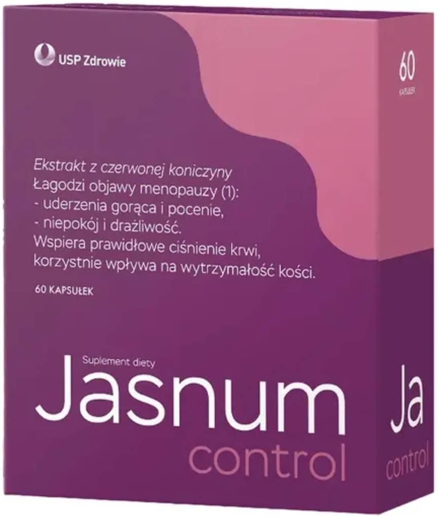 Jasnum Control - to suplement diety w postaci kapsułek, który zawiera ekstrakt z liści i kwiatów koniczyny czerwonej. Produkt przeznaczony dla kobiet w okresie menopauzy. Składniki: Ekstrakt z liści i kwiatów koniczyny czerwonej (Trifolium pratense); hydroksypropylometyloceluloza (kapsułka). Składniki w 1 kapsułce: Ekstrakt z liści i kwiatów koniczyny czerwonej (Trifolium pratense) 200 mg. Masa netto: 60 kapsułek Właściwości: Koniczyna czerwona - może wpływać na łagodzenie dolegliwości związanych z menopauzą. Zalecane dzienne spożycie: Dorośli: 1-2 kapsułki dziennie. Przeciwwskazania: Nadwrażliwość na którykolwiek ze składników preparatu. W okresie ciąży i karmienia piersią przed zastosowaniem należy skonsultować się z lekarzem lub farmaceutą. Przechowywanie: Przechowywać w suchym miejscu. Chronić od światła i wilgoci. Przechowywać w temperaturze nie przekraczającej 25°C. Przechowywać w sposób niedostępny dla małych dzieci. Producent: USP ZDROWIE SP.ZO.O. Poleczki 35 Warszawa