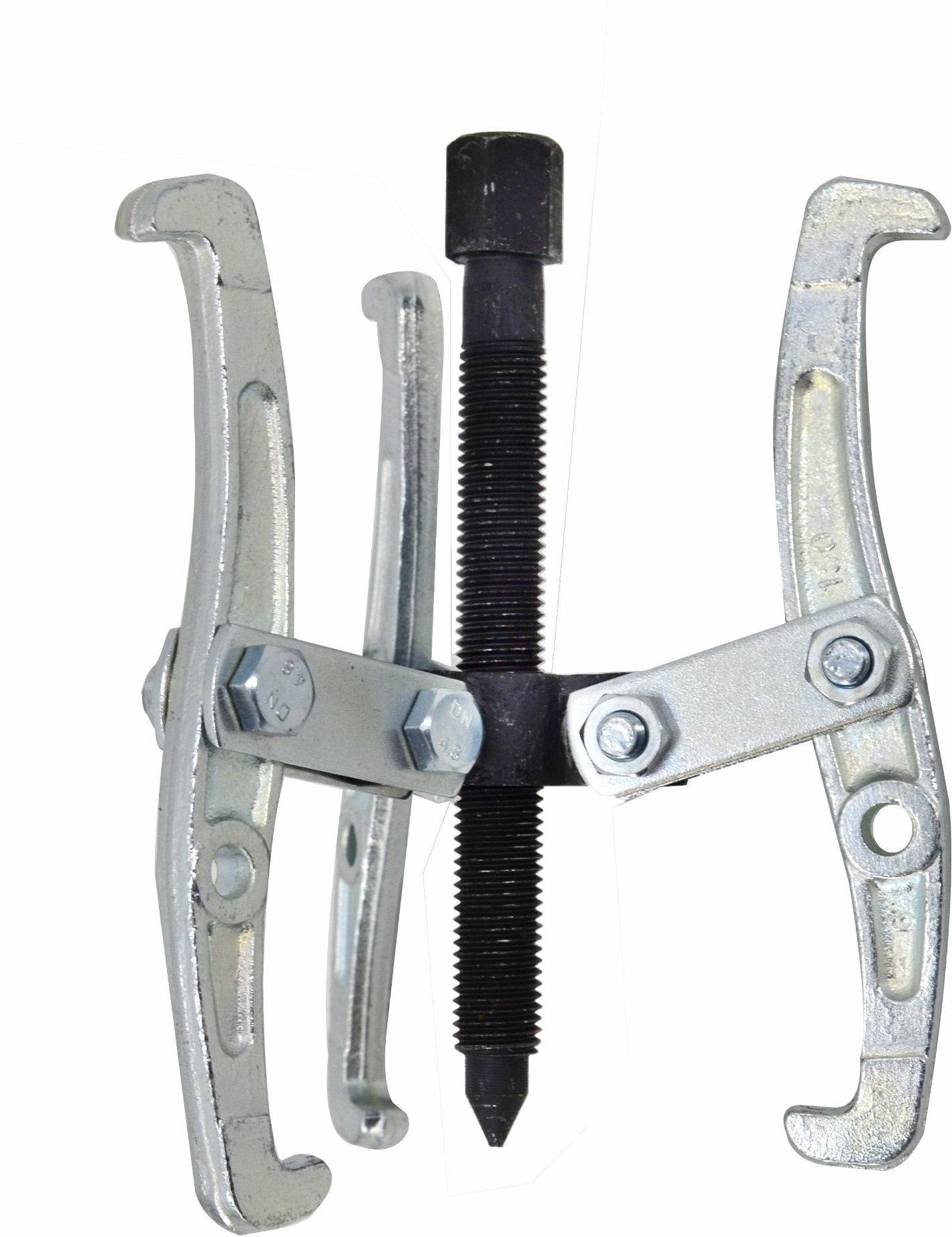 Ściągacze trójramienne dwustronne przeznaczone są do ściągania łożysk, kół pasowych, kół zębatych, tarcz i pierścieni. Dwustronna konstrukcja ramion umożliwia ściąganie pierścieni wewnętrznych i zewnętrznych osadzonych na różnej głębokości. Długość 100 mm. Waga 0,52 kg.