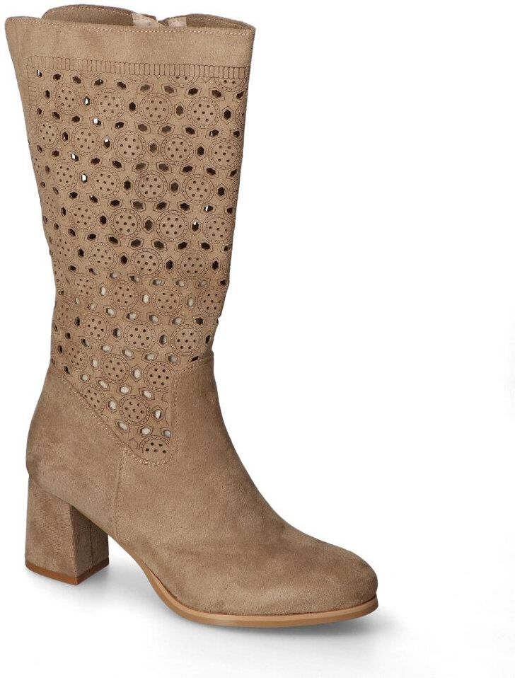 Kozaki M.Daszyński to wyjątkowy model, który łączy w sobie modny design i komfort noszenia. Wykonane z wysokiej jakości ekozamszu, te ażurowe kozaki wyróżniają się nie tylko estetyką, ale także funkcjonalnością. Ich subtelny, beżowy kolor sprawia, że doskonale komponują się z różnorodnymi stylizacjami, od casualowych po eleganckie.Ażurowe wycięcia na cholewce dodają lekkości i oryginalności, a jednocześnie zapewniają odpowiednią wentylację. Wnętrze pokryte materiałem tekstylnym oraz skórzana wkładka gwarantują komfort i ciepło, co czyni je idealnym wyborem na chłodniejsze dni. Obcas o średniej wysokości zapewnia stabilność, a jednocześnie podkreśla kobiecą sylwetkę.Kozaki M.Daszyński są idealne na różnorodne okazje – świetnie sprawdzą się zarówno na wyjścia do pracy, jak i na wieczorne spotkania. Wybierz te kozaki, aby cieszyć się połączeniem nowoczesnego stylu z komfortem, który docenisz każdego dnia.