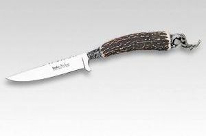Linder 222710 Tradycyjny nóż bawarski z rękojeścią wykonaną z rogu jelenia. Na jej końcu figura koziorożca odlana z nowego srebra (stop miedzi, niklu i cynku). Polerowane na wysoki połysk 10 cm ostrze ze stali nierdzewnej 420 z ozdobnym grzbietem. W zestawie pochwa.