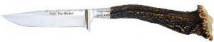 Tradycyjny nóż bawarski z rękojeścią wykonaną z rogu jelenia. Zdobione 10 cm ostrze ze stali nierdzewnej 420. W zestawie pochwa.
