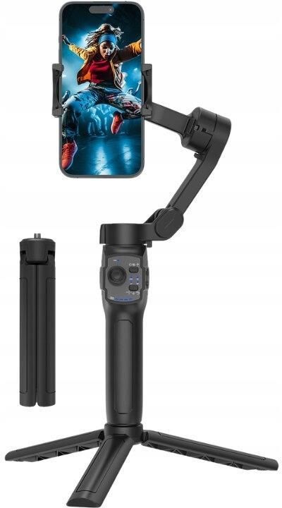 Gimbal MAJESTICLINE AJ Axis AI Czarny Rodzaj akcesorium: Gimbal ręczny Typ stabilizatora: Trzyosiowy Zastosowanie: Smartfony Kolor: Czarny Udźwig [g]: 280 Waga [g]: 374 Indeks: 2088585 Gotowy do akcji Stabilność w ruchu Trzyosiowa konstrukcja stabilizuje nagrania nawet podczas dynamicznych ujęć. Stabilizator eliminuje drgania przy filmowaniu z ręki — bez względu na to, czy jesteś w górach, na plaży czy na ulicy. Tryby pracy i śledzenie Urządzenie obsługuje kilka trybów, w tym Follow, Lock i FPV. Dołączany moduł AI automatycznie rozpoznaje twarz i śledzi ruchy osoby w kadrze, pozwalając zachować ostrość bez potrzeby dotykania ekranu. Pełna kontrola w dłoni Przejrzysty panel sterowania oraz joystick umożliwiają szybkie dostosowanie kąta i płynne przejścia. Dzięki funkcji obrotu o 360° łatwo nagrasz zarówno vlog, jak i dynamiczne ujęcia sportowe. Przemyślana konstrukcja Składany mechanizm sprawia, że stabilizator bez problemu mieści się w torbie. Gotowy na długie sesje Wbudowany akumulator 3600 mAh zapewnia długi czas pracy i możliwość ładowania przez USB-C podczas użytkowania. To przydatne rozwiązanie w plenerze i podczas dłuższych nagrań. Co w opakowaniu? Gimbal MAJESTICLINE AJ Axis AI, moduł śledzenia AI, kabel USB-A/USB-C i dokumentacja. Rodzaj akcesorium: Gimbal ręczny Typ stabilizatora: Trzyosiowy Zastosowanie: Smartfony Kolor: Czarny Udźwig [g]: 280 Waga [g]: 374 Załączona dokumentacja: Instrukcja obsługi w języku polskim, Karta gwarancyjna Zawartość zestawu: Kabel USB - USB-C, Moduł śledzenia Dedykowany model: Uniwersalny