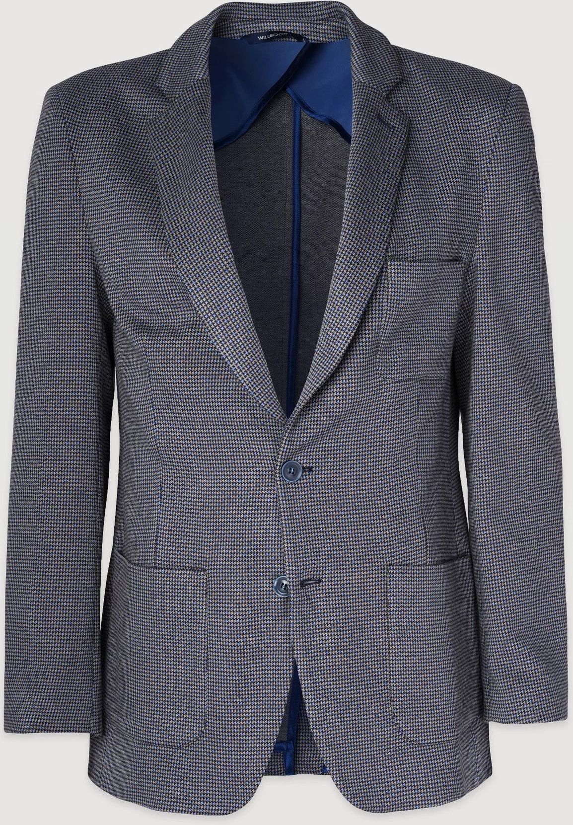 Marynarka bez podszewki Marynarki uszyte z domieszką lekkich tkanin w odcieniach niebieskiego, grafitu i szarości. Pasują na typowe casualowe wyjścia, a dzięki ich fakturze można je zestawiać z mocnymi kolorami i deseniami koszul. Dodatkowe informacje Marynarka w drobną pepitkę Głębokie kieszenie bez klap Zapinana na dwa guziki Klasyczna kieszeń na piersi Brak klasycznej podszewki Producent: Willsoor Gwarancja: 24 m-ce Uszyto w Polsce Skład marynarki 83% wiskoza 12% poliester 5% elastan Skład wykończenia 98% poliester 2%elastan