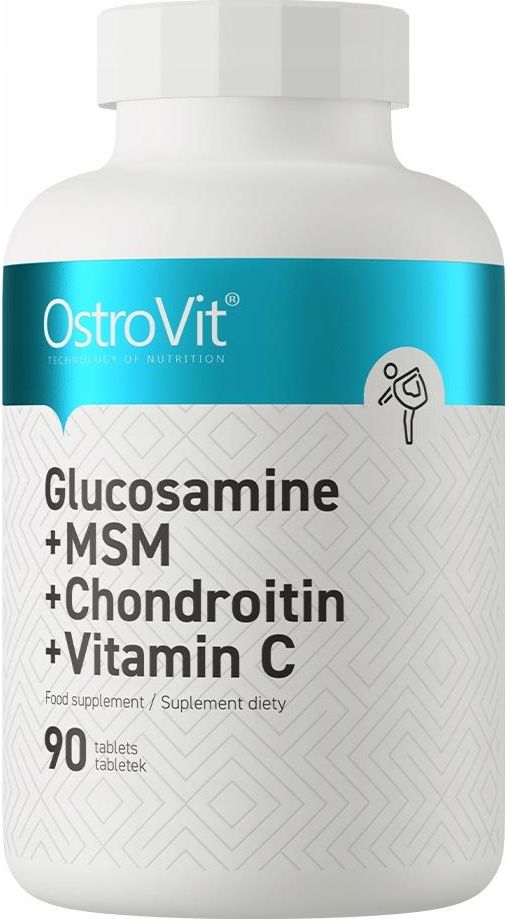 OstroVit Glukozamina + MSM + Chondroityna + Witamina C 90 tabletek OstroVit Glukozamina + MSM + Chondroityna + Witamina C to kompleksowy suplement diety, który stanowi źródło wartościowych składników – preparat zawiera m.in. glukozaminę, chondroitynę oraz witaminę C. To produkt w postaci łatwych do połknięcia tabletek, stworzony z myślą o osobach, którym zależy na uzupełnieniu codziennej diety w cenne związki. 90 Tabletek w opakowaniu 45 Porcji w opakowaniu 2 Tabletki 1 porcja = 2 tabletki Źródło wielu wartościowych związków - jedna porcja suplementu dostarcza do organizmu 1000 mg siarczanu glukozaminy, 600 mg metylosulfonylometanu, 400 mg siarczanu chondroityny oraz 160 mg witaminy C. Świetna przyswajalność - zastosowanie w produkcie glukozaminy i chondroityny w formie siarczanu pozytywnie wpływa na biodostępność związków. 1 porcja = 2 tabletki. Wygoda - preparat w postaci łatwych do połknięcia tabletek. Wydajność - opakowanie produktu zawiera 45 porcji preparatu. OstroVit Glukozamina + MSM + Chondroityna + Witamina C - źródło cennych składników Glukozamina to organiczny związek chemiczny stanowiący aminową pochodną glukozy, który występuje naturalnie w wielu tkankach w organizmie człowieka. W ustroju jest syntetyzowany w niewielkich ilościach, a zdolność do jego produkcji spada wraz z wiekiem. Składnik ten można dostarczać do organizmu wraz z pożywieniem lub w formie suplementów diety. MSM, czyli metylosulfonylometan, to organiczny związek siarki, który w codziennej diecie występuje m.in. w mleku i produktach mlecznych, jajach, owocach, warzywach i pełnoziarnistych produktach zbożowych. MSM jest bardzo delikatną substancją, która łatwo ulega degradacji pod wpływem obróbki termicznej, pasteryzacji czy zamrażania. Dlatego też dobrym rozwiązaniem może być dostarczanie tego związku poprzez suplementację. Chondroityna to natomiast organiczny związek chemiczny należący do grupy mukopolisacharydów, zbudowany z reszt kwasu glukuronowego oraz N-acetylogalaktozoaminy. To substancja naturalnie syntezowana w organizmie człowieka, jednak zdolność do jej wytwarzania zmniejsza się wraz z wiekiem. Składnik ten występuje m.in. w chrząstce wołowej, a także w suplementach diety. Witamina C, znana również jako kwas askorbinowy, to organiczny związek chemiczny rozpuszczalny w wodzie, który jako substancja egzogenna musi być regularnie dostarczany do ustroju wraz z pożywieniem lub w formie suplementów diety. W żywności występuje m.in. w papryce, kapuście, brukselce, kiwi, truskawkach oraz czarnych porzeczkach. Właściwości składników zawartych w OstroVit Glukozamina + MSM + Chondroityna + Witamina C Witamina C wspiera prawidłową produkcję kolagenu w celu zapewnienia optymalnego funkcjonowania naczyń krwionośnych, kości, chrząstki, dziąseł, zębów i skóry, a także pomaga w utrzymaniu właściwej pracy układu nerwowego. Dodatkowo związek ten przyczynia się do utrzymania prawidłowego metabolizmu energetycznego, pomaga w utrzymaniu właściwego funkcjonowania układu odpornościowego oraz wspiera ochronę komórek przed stresem oksydacyjnym. Ponadto kwas askorbinowy przyczynia się do zmniejszenia uczucia zmęczenia i znużenia, ułatwia regenerację zredukowanej formy witaminy E oraz zwiększa przyswajanie żelaza.