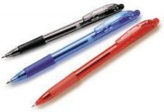 Długopis automatyczny Pentel BK 417 WOW 0,7 niebieski 10 sztuk WOW, jak on dobrze wygląda! Ten model, oprócz tego że mało kosztuje, starcza na długo i podnosi efektywność pracy w biurze, to niezwykle atrakcyjnie się prezentuje. Wesołe kolory obudowy przyciągają spojrzenia, rozweselając przestrzeń biura, ożywiając każde biurko i piórnik. Gumowy uchwyt działa antypoślizgowo, podnosząc komfort użytkowania tego modelu. Funkcjonalny klip wepnie się w każdą kieszeń i notes, ułatwiając przenoszenie długopisu z miejsca na miejsce. WOW - tani, ale rewelacyjny! Wykonany ze świetnych materiałów charakteryzuje się: Grubość końcówki: 0.7 mm Końcówka: "niklowane srebro" Grubość linii pisania: 0.27 mm Przeznaczenie: papier, karton Długość linii pisania: 1500 m Kolor tuszu: niebieski Cena dotyczy 10 sztuk