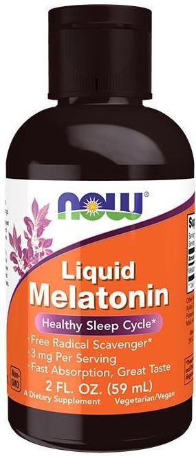 - SUPLEMENT DIETY NOW FOODS Melatonina w płynie, 3mg, 60ml Melatonina pomaga w łagodzeniu subiektywnego odczucia zespołu nagłej zmiany strefy czasowej Melatonina pomaga w skróceniu czasu potrzebnego na zaśnięcie Dzienna porcja produktu do spożycia (zalecana przez producenta): 1 dozowanie (0,9ml) …