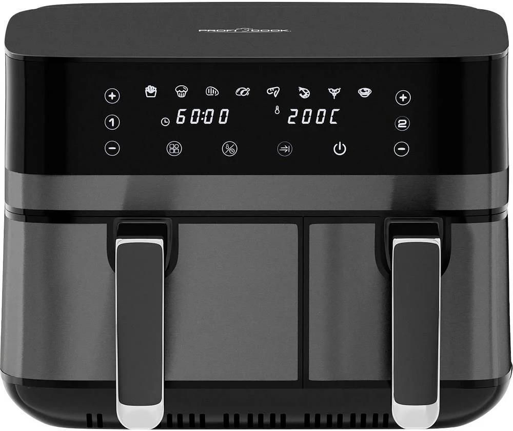 Podwójna frytkownica beztłuszczowa ProfiCook PC-FR 1295 H ProfiCook PC-FR 1295 H to duża, beztłuszczowa frytownica powietrzna z dwoma, asymetrycznymi pojemnikami o pojemności 5.5 i 3.5 litra. Łączna pojemność robocza to aż 9 litrów! Jest to połączenie pieca konwekcyjnego, grilla i frytkownicy i …