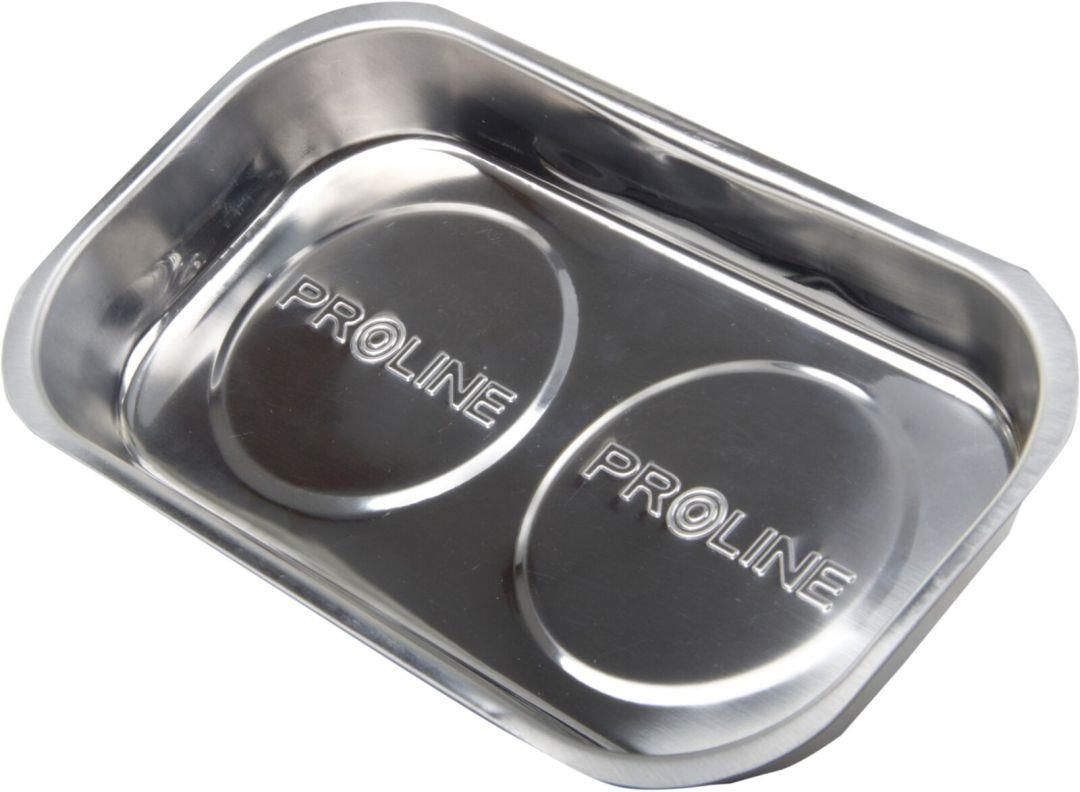 46959 Miska magnetyczna 240x140 mm, Proline Cechy: Służy do przechowywania metalowych części takich jak np. śrubki, gwoździe, nity, zszywki Gumowa podstawa miski magnetycznej zabezpiecza podłoże przed zarysowaniem Dane techniczne: Wymiary miski: 240x140 mm Wysokość miski: 40 mm