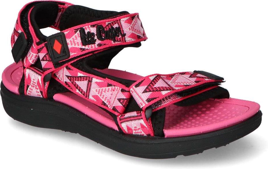 Modne sandały popularnej firmy Lee Cooper:- wykonane z najlepszej jakości materiałów tekstylnych - wnętrze wykonane z wygodnego materiału dla zapewnienia wygody - miękka wkładka z wysokiej klasy tworzywa syntetycznego gwarantuje komfort- podeszwa o grubości 2 cm zapewnia odpowiednią stabilizację stopy - zapinana na rzep cholewka zapewnia dopasowanie obuwia do tęgości stopy - różowy kolor oraz modny fason tworzą zachwycający efekt!