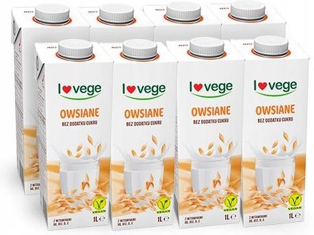 Napój Lovege Owsiany 1l - 8 sztuk Żeby było owsiane, najpierw musi być zasiane. Nie ma innego wyjścia, bo Lovege napój owsiany wytwarzany jest prosto z owsa, a nie z koncentratu. Wszystkie składniki są pochodzenia roślinnego, więc możesz pić śmiało, nawet jeśli jesteś weganinem. A skoro nie spożywasz już mięsa i produktów pochodzenia zwierzęcego, to brakować Ci może witaminy B12. Tylko spokojnie, bez paniki! Właśnie dlatego dodajemy ją w napoju owsianym Lovege. Dorzucamy też witaminy B6, D i E dla Twojego dobrego samopoczucia. Dlatego na śniadanie wsypuj do miski płatki Corn Flakes, FIT, Crunchy lub Granola i zalewaj nowym owsianym napojem Lovege. Możesz też dodać go do kawy, herbaty, koktajlu czy deseru. A jak masz ochotę na placuszki czy naleśniki – śmiało! Niech pierwszy rzuci orzeszkiem ten kto nie lubi placków! My lubimy, ale lubimy też być eko, więc nasze opakowania w 87% pochodzą z surowców odnawialnych. Zadbaj o siebie i o planetę. Napoje, które tworzą klimat! Wybierz napój Lovege Owsiany, bo: ma pyszny smak, bo robimy go prosto z owsa, nie z koncentratów produkowany jest przez polskiego producenta ma ekologiczne, biodegradowalne opakowanie i obniżony ślad węglowy jest 100% vege nie dodajemy do niego cukru naturalnie bez laktozy wzbogacamy go witaminami: B6, B12, D i E ma niską zawartość soli i kwasów tłuszczowych nasyconych Napój owsiany z witaminami. Produkt UHT. Bez dodatku cukru. Zawiera naturalnie występujące cukry. Składniki: Woda, owies (10%), olej słonecznikowy, sól morska, regulator kwasowości: fosforany potasu; stabilizator: guma gellan; witaminy: B6, B12, D, E Owies pochodzi z UE oraz spoza UE Może zawierać soję i orzechy. Masa netto: 1 litr*8szt Warunki przechowywania: Przechowywać w temperaturze pokojowej. Nie wystawiać na działanie promieni słonecznych. Po otwarciu przechowywać w lodówce (4-7℃) nie dłużej niż 4 dni. WARTOŚCI ODŻYWCZE Wartość odżywcza: w 100 ml produktu Wartość energetyczna: 132 kJ / 31 kcal Tłuszcz: 0,7 g w tym kwasy tłuszczowe nasycone: < 0,1 g Węglowodany: 5,7 g w tym cukry: 3,9 g Błonnik: 0,3 g Sól: 0,13 g witamina B12: 0,19 μg witamina B6: 0,11 mg Białko: 0,4 g witamina E: 0,9 mg witamina D: 0,38 μg **% Referencyjnej Wartości do Spożycia dla osób dorosłych (8 400 kJ/ 2 000 kcal): -