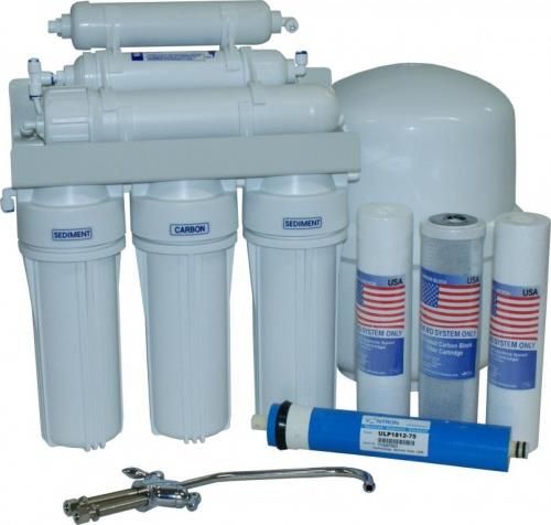 System Odwróconej Osmozy - 6 stopniowy Aquafilter z wkładem mineralizującym Dla wszystkich, którzy dbają o swoje zdrowie i jakośc wody. Rekomendowany dla rodzin z małymi dziećmi Oferowany przez nas 6-stopniowy system odwróconej osmozy zawiera korpusy filtrów z mocowaniem, komplet wkładów filtracyjnych (3 wkłady mechaniczne, membranę osmotyczną, wkład liniowy węglowy oraz mineralizator), zbiornik, mosiężną wylewkę chromowaną podwójną (woda czysta lub mineralna) oraz wszelkie akcesoria potrzebne do podłączenia systemu do dowolnej instalacji wodnej. Do zestawu dołączamy również instrukcję wraz ze schematem podłączeń poszczególnych elementów zestawu. System filtracyjny to skuteczny sposób na rozwiązanie problemów z zanieczyszczeniem wody pitnej w Twoim domu. Odpowiednio dobrany układ filtrów pozwala usunąć zanieczyszczenia mechaniczne (rdzę, piasek, muł – filtracja 20 mikr, 5 mikr) oraz skutecznie poprawić walory smakowe wody za pomocą wkładów wykorzystujących właściwości węgla aktywnego (skuteczne usuwanie chloru, związków organicznych i innych zanieczyszczeń). W zależności od potrzeb i rodzaju zanieczyszczenia wody, standardowy zestaw wkładów możemy modyfikować uwzględniając Twoje indywidualne potrzeby. Każdy zestaw jest wyposażony w komplet akcesoriów potrzebnych do montażu: przyłącze, zawór odcinający, wężyki, taśmę teflonową, wylewkę oraz klucz służący do łatwej wymiany wkładów. 6 stopniowy system Odwróconej Osmozy z wkładem mineralizującym. Dzięki wysokiej jakości membrany osmotycznej może oczyścić do 280 l wody na dobę. Niski mikronaż 0,0001 µm, pozwala usuwać z wody większość zanieczyszczeń (w tym bakterie i wirusy). System wyposażony jest w końcowy wkład węglowy, który poprawia smak i zapach wody oraz wkład mineralizujący, który wzbogaca wodę w pierwiastki mineralne takie jak: wapń, magnez. System w sprzedaży oferowany jest z dwuobwodową wylewką umożliwiającą pobór wody bezpośrednio po membranie RO i osobno wody mineralnej. Dane techniczne: żywotność wkładu: 3-6 miesięcy lub około 12000 litrów wody (zależy od jakości wody) wymiary filtra 9 7/8" x 2,5" (256 mm x 62 mm) temperatura pracy 2-23 stopni Celsjusza stosowanie do filtracji wody pitnej oraz ogólnoużytkowej Membrana TFC-75F:Membrany RO składają się z wielu cienkich warstw porowatej, półprzepuszczalnej folii nawiniętej wokół centralnego rdzenia. Membrany z serii ACA-2 są kompatybilne z większością systemów RO dostępnych na rynku. Membrany są dostępne w różnych pojemnościach: 50GPD, 75GPD 100GPD i 125GPD, aby spełnić wymagania klientów. Skutecznie usuwają 96% -99% zawieszonych cząstek, większości bakterii i wirusów, VOC (nie mniej niż 0,0001 μm), a nawet jonów. Wszystkie przefiltrowane zanieczyszczenia są spłukiwane do drenażu.Membrany serii ACA-2 poprawiają ogólną jakość wody. Należy pamiętać, że wydajność membran RO zależy od temperatury wody i zastosowanego ciśnienia. Niska temperatura wody wpływającej wpłynie na (niższą) wydajność membrany. Ciśnienie ma podobny efekt. W takich przypadkach wymagana jest pompa wspomagająca.Filtracja osmotyczna usuwa z wody od 96% – 99% wszystkich zanieczyszczeńOpis:Membrany Osmotyczne marki Aquafilter. Usuwają zanieczyszczenia nie mniejsze niż 0,0001µm, w tym bakterie oraz wirusy.