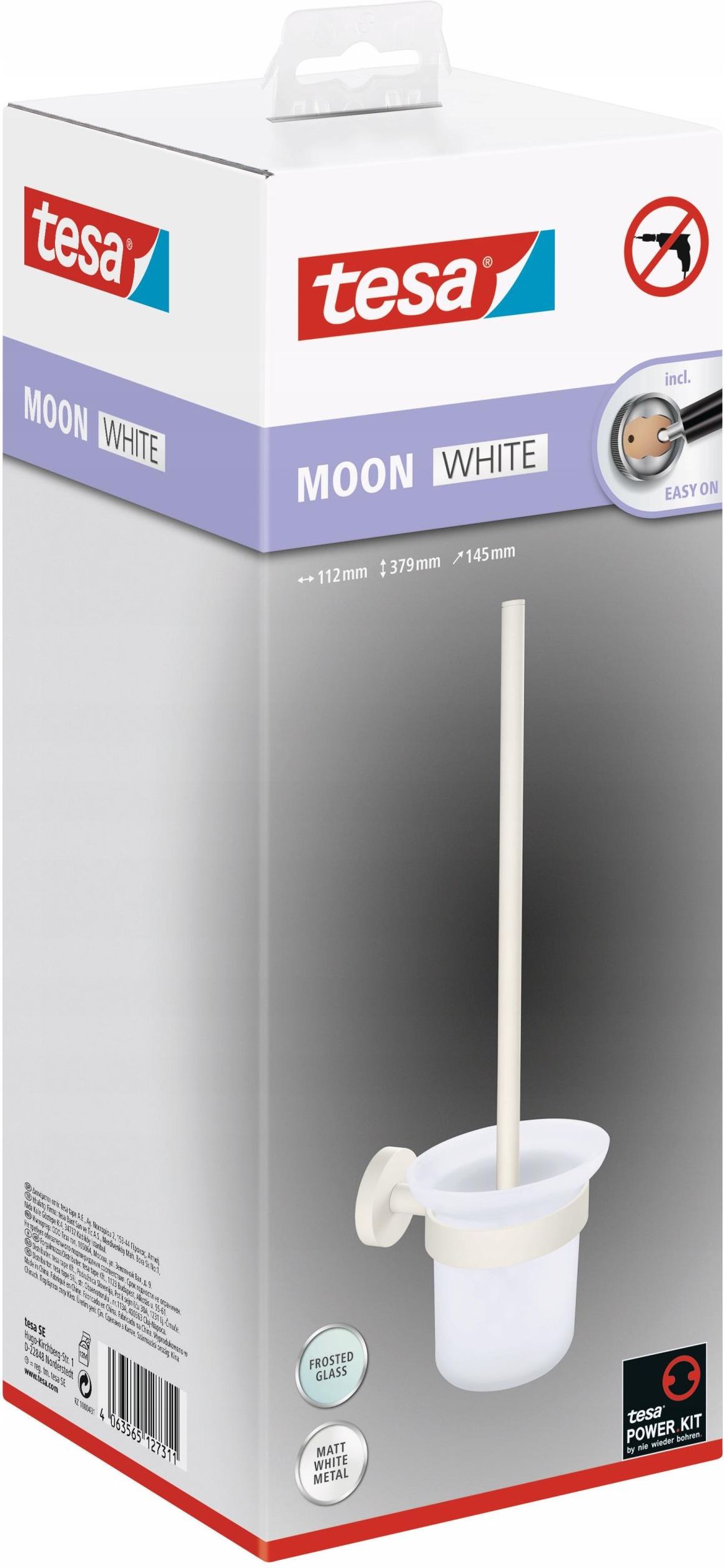 tesa® Biała szczotka do WC Moon White Praktyczny i higieniczny: uchwyt na szczotkę do WC w kolorze matowej bieli jest wyposażony w elegancki pojemnik ze szkła satynowego. Niezależnie od tego, czy chcesz go zamocować w łazience w stylu industrialnym, skandynawskim, czy też bardziej neutralnym — tym …