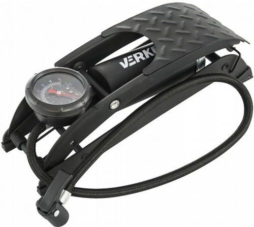 Pompka samochodowa nożna rowerowa z manometrem Verke Pompka nożna jednotłokowa VERKE. Pompka o solidnej konstrukcji, wykonana z tłoczonej, lakierowanej blachy stalowej o grubości 3 mm. Pedał w całości pokryty gumą dla lepszej przyczepności. Czytelny manometr pokazujący w barach (0-7) oraz PSI …