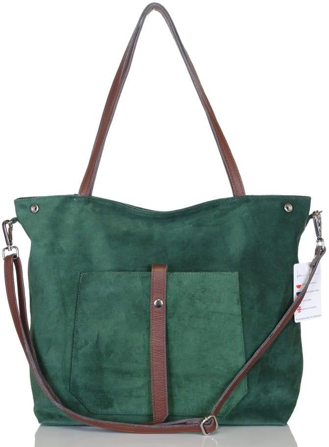 Włoski zielony zamszowy shopper SKÓRA Wasilków