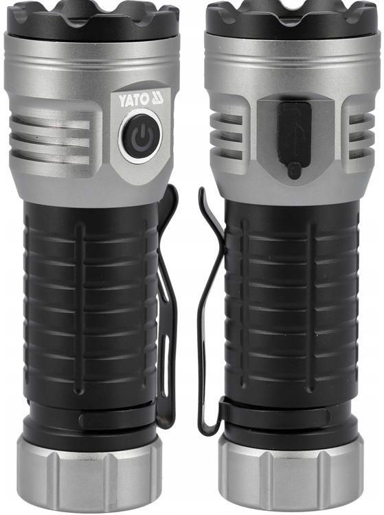 YATO LATARKA AKUMULATOROWA 30W 3000LM YT-085612 Latarka akumulatorowa 30W 3000lm Niewielka latarka z siedmioma trybami pracy, które umożliwiają dostosowanie oświetlenia do warunków i wykonywanych czynności. Diody LED o mocy 30 W emitują światło do 3000 lm, zapewniając czas świecenia do 8 godzin oraz zasięg do 210 m. Źródło światła 7 diod POWER LED o łącznej mocy 30 W 7 trybów świecenia: 3000 lm (turbo), 1600 lm (wysoki), 1000 lm (średni), 500 lm (niski), 250 lm (ultra niski), światło migające i światło SOS zasięg pracy: 210 m (turbo), 165 m (wysoki), 135 m (średni), 95 m (niski), 65 m (ultra niski) żywotność: 20000 h Źródło energii akumulator: Li-Ion 3,7 V 2600 mAh (typ 20650) czas pracy: 30 s (turbo), 2 h (wysoki), 3 h (średni), 5 h (niski), 8 h (ultra niski) czas ładowania: 3 h wskaźnik naładowania akumulatora (światło zielone/czerwone) kabel: USB-C Budowa i cechy wodoodporność: IPX4 barwa światła: 6000-7000 K CRI: 70 przycisk on/off - uruchamia latarkę, zmienia tryby pracy, sygnalizuje poziom naładowania baterii. Przytrzymanie przycisku włącza tryb pulsacyjny oraz SOS, a dwukrotne naciśnięcie uruchamia wyjątkowo mocne światło w trybie turbo (3000 lm), który po 30 sekundach automatycznie przechodzi w tryb wysoki (1600 lm), oszczędzając energię materiał: aluminium magnes w podstawie klips umożliwiający zaczepienie do odzieży waga: 127 g (bez baterii), 152 g (z baterią) wymiary: 118 x 41 x 35 mm Rodzaj: POWER LED Moc: 30 W Strumień świetlny: 3000 / 1600 / 1000 / 500 / 250 lm Zasięg pracy: 210 (turbo), 165 (wysoki), 135 (średni), 95 (niski), 65 (ultra niski) m Tryby świecenia: 7: wysoki, średni, niski, ultra niski, turbo, światło migające, światło SOS Materiał: aluminium Wymiary: 118x41x35 mm Źródło światła: 7 LED Współczynnik oddawania barw CRI Ra: 70 Temperatura barwowa: 6000-7000 K Rodzaj akumulatora: Li-Ion Pojemność akumulatora: 2600 mAh Napięcie akumulatora: 3.7 V d.c. Czas pracy: 30 s (turbo), 2 h (wysoki), 3 h (średni), 5 h (niski), 8 h (ultra niski) Czas ładowania: 3 h Rodzaj ładowarki: USB, USB typu C Wskaźnik naładowania akumulatora: tak Magnes: tak, w podstawie Liczba magnesów: 1 Wyłącznik: tak Żywotność: 20000 h Stopień ochrony: IPX4 Masa: 127 (bez baterii), 152 (z baterią) g Symbol: YT-085612 YT-085612