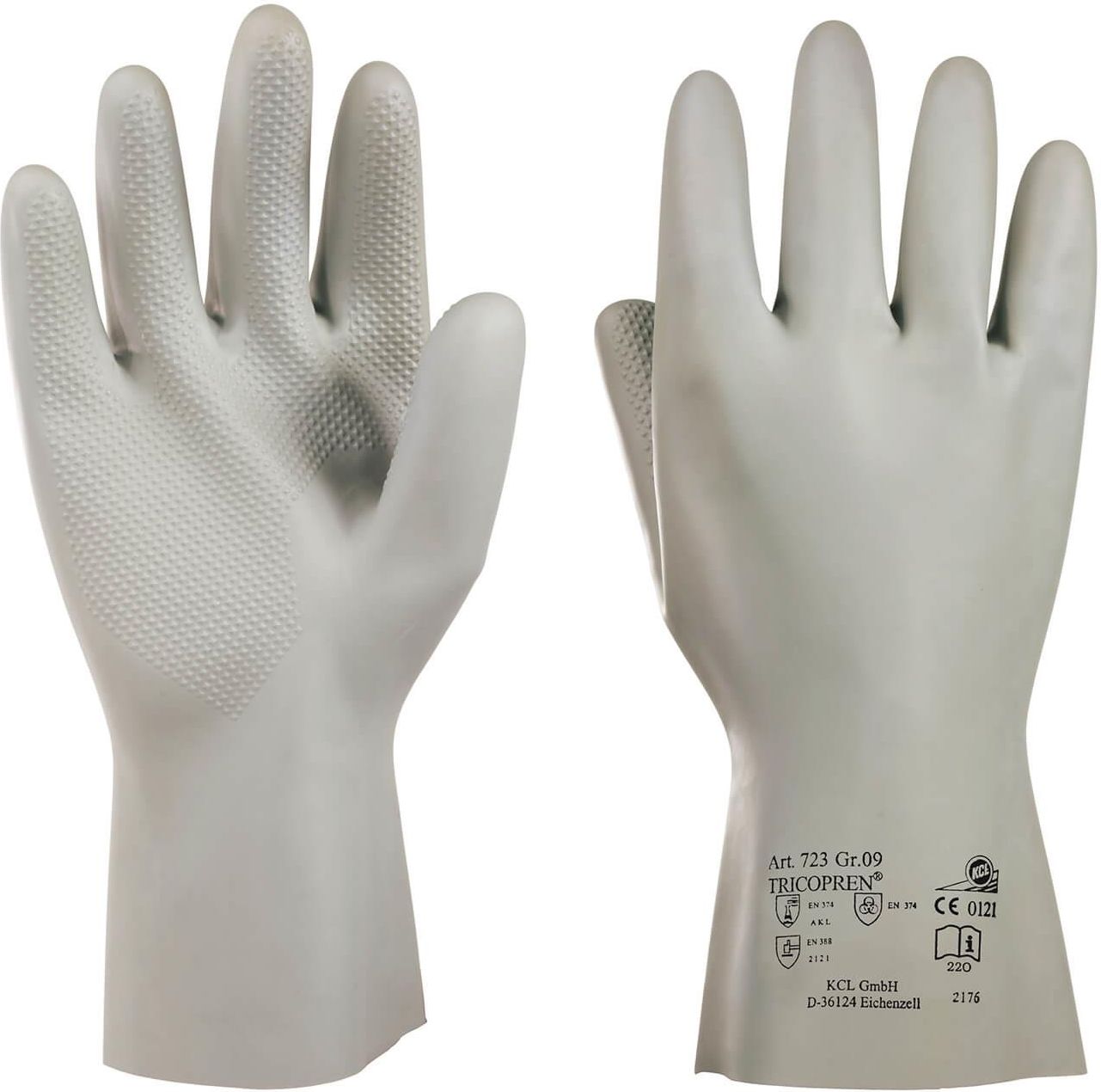 Rękawice chemoodporne KCL Tricopren 723, w całości wykonane z chloroprenu, gwarantują bardzo wysoką ochronę chemiczną. Wyściółka z bezszwowego, wklejanego trykotu bawełnianego zapewnia najwyższy poziom szczelności oraz duży komfort użytkowania. Wydłużone, elastyczne mankiety chronią przed dostaniem się zanieczyszczeń i chemikaliów do wnętrza rękawic. Teksturowana powierzchnia zapewnia pewny chwyt, a elastyczność rękawic, zarówno w wysokich, jak i niskich temperaturach, umożliwia precyzyjną pracę. Rękawice robocze KCL Tricopren 723 stanowią doskonałą barierę ochronną przed przenikaniem wirusów, bakterii i grzybów oraz są odporne na oleje, tłuszcze i substancje chemiczne. Dzięki dobrej wytrzymałości mechanicznej rękawice świetnie sprawdzą się nawet w najbardziej wymagających warunkach. Właściwości produktu: Wysoka elastyczność nawet w niskich temperaturach Welurowa, wklejana wyściółka Wysoka odporność na oleje, tłuszcze oraz substancje chemiczne Ochrona przed bakteriami, grzybami i wirusami Ochrona przed zagrożeniami chemicznymi Wydłużone, elastyczne mankiety Doskonały chwyt mokrych i zaolejonych powierzchni Wysoki komfort noszenia Doskonałe wyczucie przedmiotów Wysoka wytrzymałość mechaniczna Najwyższy poziom manualności AQL 0,65 Zastosowanie: Przemysł chemiczny Prace porządkowe Laboratoria Czyszczenie i konserwacja instalacji chemicznych Praca w zaolejonym i mokrym środowisku Przenoszenie elementów skażonych chemicznie Materiał: Chloropren Dostępny rozmiar: 9 Opakowanie zbiorcze: 100 par w kartonie (10 par w opakowaniu) Normy i certyfikaty: EN 420 | EN 388 [2121X] | EN 374