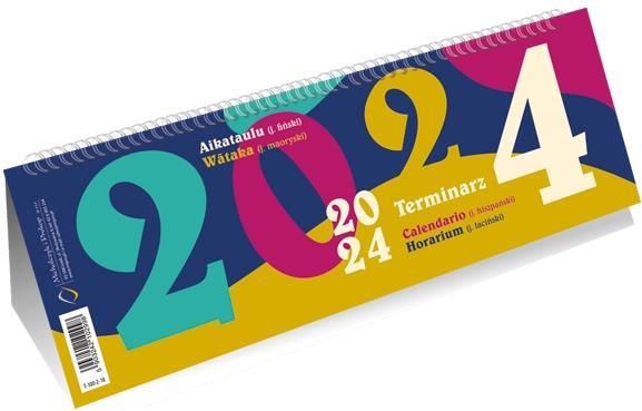 Kalendarz 2024, poziomy ze spiralką - kolory Producent: Michalczyk i Prokop Kod Producenta: T-100-2-18 EAN: 5903242102998 Terminarz ze spiralką format: 1/2 A4 rodzaj papieru: offset 90g/m2 biały układ kalendarium: 1 tydzień - 1 strona ilość stron: 64 druk: 2 kolory Oprawa: barwna, spiralka.