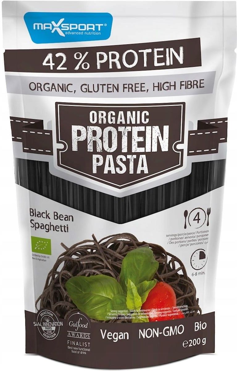 MAKARON PROTEINOWY (Z FASOLI CZARNEJ) SPAGHETTI BEZGLUTENOWY BIO 200 g MAXSPORT (batony, kremy, makarony) SKŁADNIKI mąka z fasoli czarnej* (*certyfikowany składnik ekologiczny) OPIS Ekologiczny makaron z czarnej fasoli z wysoką zawartością białka. Opakowanie zawiera 4 sugerowane porcje produktu. SPOSÓB PRZYGOTOWANIA Wrzuć makaron do wrzącej wody i gotuj przez 6-8 minut. Odsącz makaron. Makaron można spożywać z ulubionym sosem, dodać do zupy albo innego dania. WARTOŚĆ ODŻYWCZA W 100 g Wartość energetyczna: 1342 kJ / 319 kcal Tłuszcz: 3,5 g w tym kwasy tłuszczowe nasycone: 0,5 g Węglowodany: 39,5 g w tym cukry: 6 g Błonnik: 19 g Białko: 42 g Sól: 0 g INFORMACJA ALERGENNA Może zawierać SOJĘ ZALECANE WARUNKI PRZECHOWYWANIA Przechowywać w suchym i chłodnym miejscu PKWiU: 10.73.11.0 Gwarantowany termin przydatności (w dniach): 120 BEZ GLUTENU (deklaracja): BEZ GLUTENU (deklaracja) BEZ GLUTENU (w składnikach): BEZ GLUTENU (w składnikach) WEGAŃSKI: WEGAŃSKI WEGETARIAŃSKI: WEGETARIAŃSKI Jednostka: szt Masa brutto: 0,226 Masa netto (g): 200 Bez Cukru: BEZ CUKRU (w składnikach) CERTYFIKAT BIO: CERTYFIKAT BIO Producent: MAXSPORT (batony, kremy, makarony) Wysokość opakowania jednostkowego (cm): 18.00 PRODUCENT / DYSTRYBUTOR – NAZWA I ADRES: MAX SPORT S R.O., MLYNSKÉ LUHY 76/A, 82105 BRATISLAVA Kategoria specjalna: _Makarony\bezglutenowe; _WSZYSTKIE; _*** Szerokość opakowania jednostkowego (cm): 18.00 Głębokość opakowania jednostkowego (cm): 5.00 Kraj pochodzenia: Chiny Orientacyjny termin przydatności: 17.06.2027