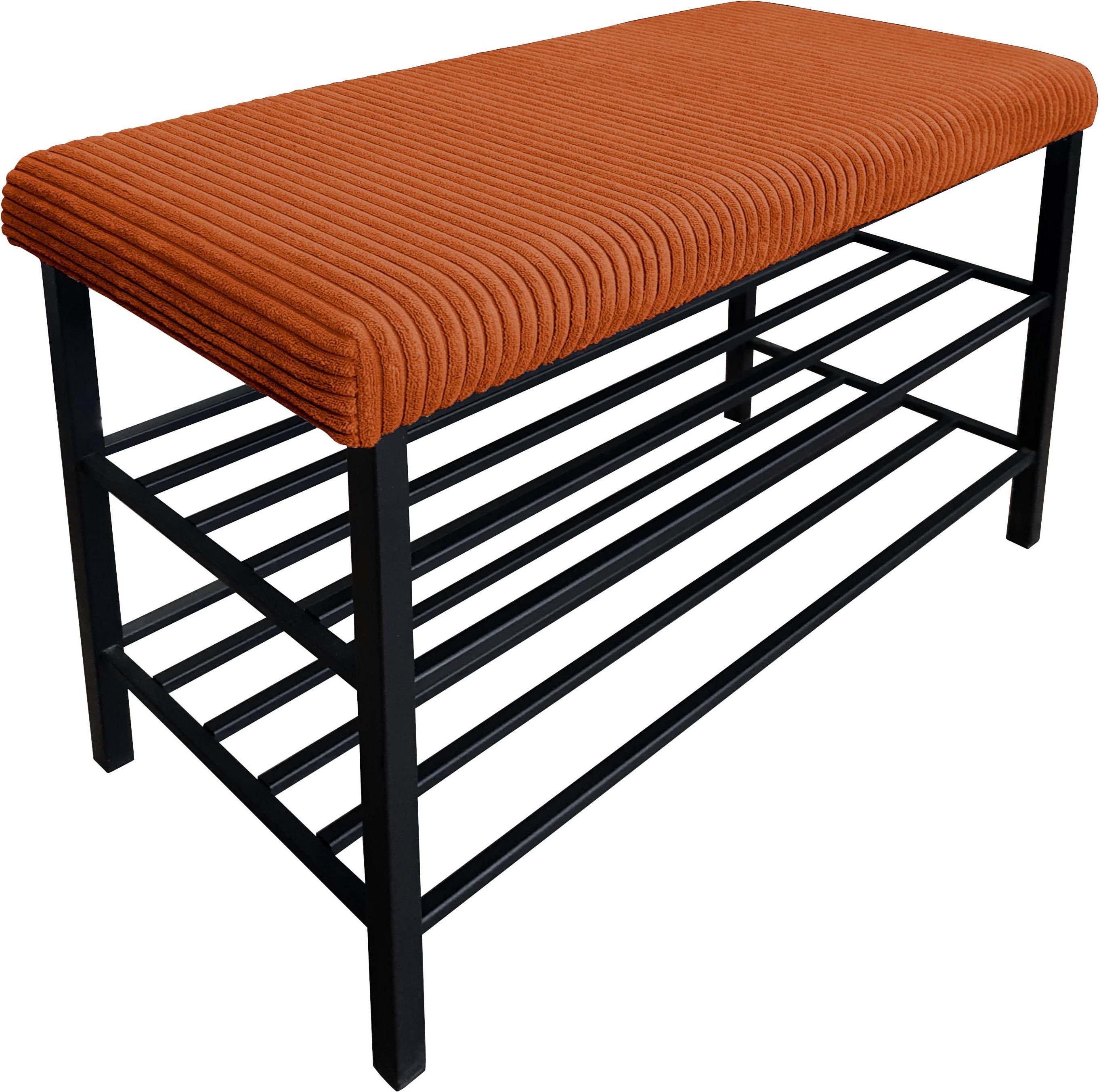 Szafka na buty Regał Półka stelaż czarny POSO 40 Szafka na buty tapicerowana, podstawa czarna POSO 40 rudy Nowoczesna, uniwersalna szafka o ciekawym designie sprawdzi się w sypialni, przedpokoju lub pomieszczeniach komercyjnych. Wygodne siedzisko wykonane zostało z wysokiej jakości pianki oraz tkaniny typu velvet. Nasza ławka posiada dwie półki na buty, co umożliwia zaoszczędzenie miejsca w korytarzach o niewielkiej powierzchni. Szafka została wykonana z profili metalowych, spawana w całości, co zapewnia stabilność konstrukcji. Nogi szafki posiadają plastikowe stopki, co zabezpieczy Państwa podłogę przed rysowaniem. Produkt prosto od polskiego producenta. Istnieje możliwość wykonania ławki w innych tkaninach. Metalowy stelaż możemy wykonać w kolorze szarym, białym oraz złotym za dopłatą. Zapraszamy do zapoznania się z naszą ofertą. Dane techniczne Szerokość: 71 [cm] Głębokość: 31 [cm] Wysokość: 55 [cm] Szerokość stelaża: 70 [cm] Głębokość stelaża: 30 [cm] Wysokość stelaża: 48 [cm] Grubość siedziska: 7 [cm] Stelaż: spawany, wykonany z profili metalowych malowany proszkowo na kolor czarny, Siedzisko: tkanina POSO Tkanina welur Poso to świetna baza dla mebli tapicerowanych. Widoczne na powierzchni rowki wizualnie sprawiają innowacyjny wygląd mebla. Charakterystyczną cechą materiału jest odporności na piling. Wraz z najwyższym wskaźnikiem odporności na tarcie podwyższa ona jakość przędzy, co potwierdza jej wytrzymałość. Welur Poso zachowuje oryginalną intensywność kolorów przez długi czas czego dowodzi wysoka odporność na działanie promieni światła.