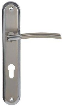 Domino Klamka z szyldem Presto PZ chrom/nikiel Klamka z szyldem Presto PZ, marki Domino. Jest to klamka o łagodnie łukowatej formie osadzona w prostokątnym szyldzie. Posiada otwór na wkładkę bębenkową. Wykonana w stylu uniwersalnym, przeznaczona jest do drzwi pokojowych. Klamka wyposażona jest we wspomaganie dwustronne, które umożliwia jej powrót do pozycji poziomej po naciśnięciu. Wysoka jakość materiałów i trwałość wykonania gwarantują wygodę użytkowania produktu przez długi czas. Kolor: chrom, nikiel. Specyfikacja techniczna Zastosowanie: Do drzwi pokojowych Styl: Uniwersalny Typ szyldu: Wkładka Montaż: Uniwersalny Waga: 620 g Wysokość: 24,0 cm Szerokość: 12,4 cm Głębokość / Grubość: 4,3 cm