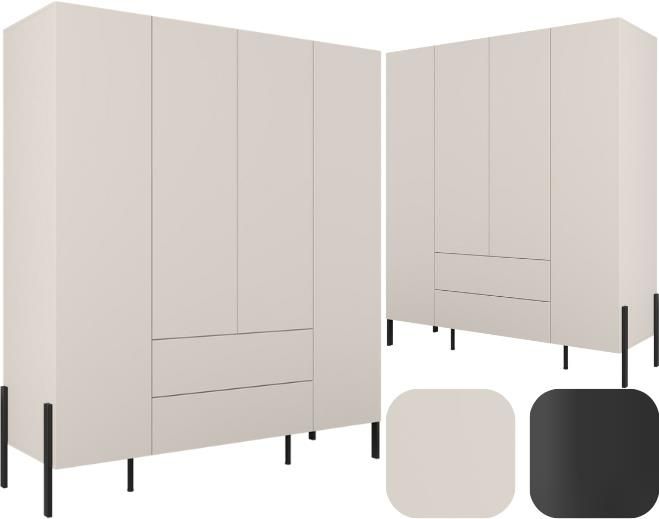 Nowoczesna kaszmirowa szafa 4 drzwiowa JUKON 24KSND20 Kolekcja JUKON to kwintesencja nowoczesnej elegancji i funkcjonalnego designu. Meble zostały zaprojektowane z myślą o osobach, które cenią minimalistyczną estetykę i wysoką jakość wykończenia. Głównym atutem zestawu jest subtelny, ciepły odcień kaszmiru, który wprowadza do wnętrza przytulność i spokój, tworząc idealną przestrzeń do wypoczynku. Konstrukcja mebli osadzona jest na smukłych, czarnych metalowych nóżkach, które nadają całości lekkości i podkreślają nowoczesny charakter kolekcji. Kontrast pomiędzy delikatnym kolorem korpusów a wyrazistymi nóżkami to modny akcent, który świetnie komponuje się zarówno z jasnymi, jak i ciemnymi aranżacjami wnętrz. JUKON to idealna propozycja do współczesnej sypialni, w której liczy się zarówno estetyka, jak i komfort. Wymiary szerokość: 180 cm wysokość: 210 cm głębokość: 60 cm Zalety kolekcji JUKON Nowoczesny design – eleganckie połączenie koloru kaszmir z czarnymi metalowymi nóżkami tworzy stylową i modną całość. Uniwersalna kolorystyka – ciepły odcień kaszmiru pasuje do wielu aranżacji, zarówno jasnych, jak i ciemnych. Lekka forma – podwyższone meble na nóżkach nadają wnętrzu lekkości i ułatwiają utrzymanie czystości pod nimi. Solidna konstrukcja – trwałe materiały i metalowe nóżki zapewniają stabilność oraz długowieczność użytkowania. Funkcjonalność – praktyczne rozwiązania przechowywania: pojemne szuflady, szafy, łóżko z opcją schowka. Matowe wykończenie frontów – odporne na odciski palców, dodające elegancji. Bezuchwytowy system lub subtelne uchwyty – nowoczesna estetyka i wygoda otwierania. Spójna stylistyka kolekcji – wszystkie elementy harmonijnie się uzupełniają, tworząc spójną przestrzeń. Łatwość aranżacji – idealne do nowoczesnych, skandynawskich czy industrialnych sypialni. Możliwość personalizacji zestawu – wybór spośród kilku elementów, dopasowanych do różnych potrzeb i rozmiarów pomieszczeń. Dane techniczne ✅ WIENIEC GÓRNY : Płyta meblowa 15mm ✅ WIENIEC DOLNY : Płyta meblowa 15mm ✅ ŚCIANY BOCZNE : Płyta meblowa 15mm ✅ ŚCIANA TYLNA : Płyta HDF 3mm ✅PRZEGRODY KORPUSU : Płyta meblowa 15mm ✅ FRONTY - DRZWI : Płyta meblowa 15mm ✅ PÓŁKI: Płyta meblowa 15mm ✅ UCHWYT : push to open ✅ NÓŻKI: Noga meblowa 195mm - 2 sztuki, noga metalowa 460x40x20 - KOLOR CZARNY MAT - 4 sztuki