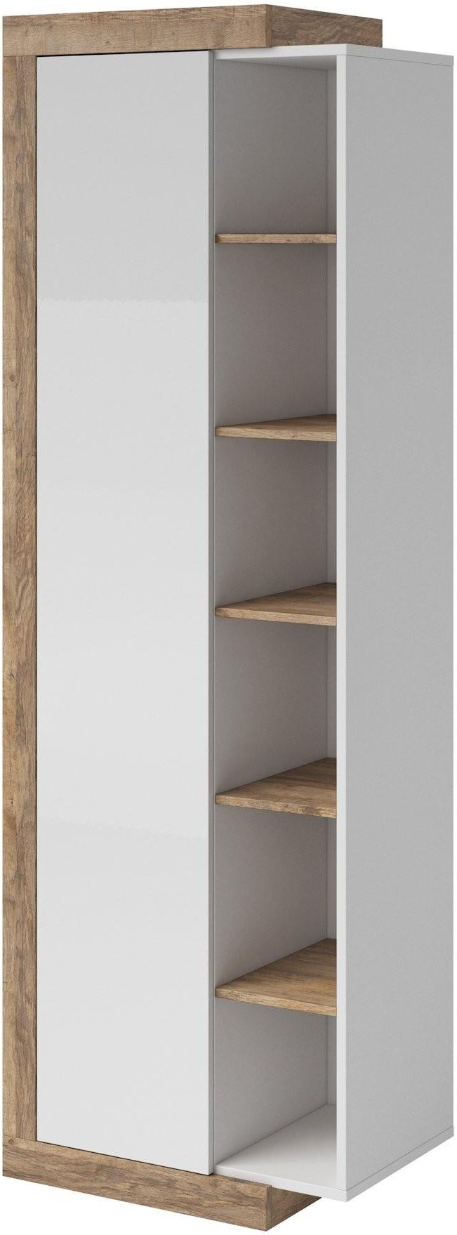 Sintra Witryna 1-drzwiowa Biały Połysk / Dąb Samdal Witryna Sintra 1-drzwiowa w eleganckim połączeniu Białego Połysku i Dębu Samdal. Wymiary: 67x200x40 cm. Wytrzymała, laminowana płyta. 10 półek, samodzielny montaż. Idealna do nowoczesnych wnętrz. Wymiary: Szerokość (cm): 67 Wysokość (cm): 200 …